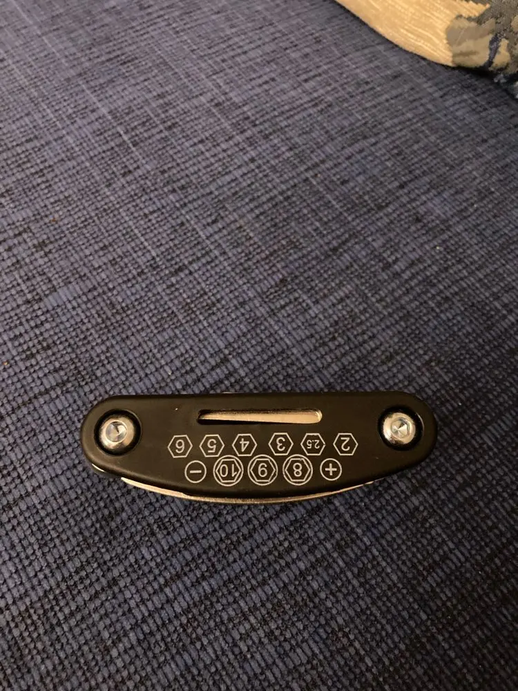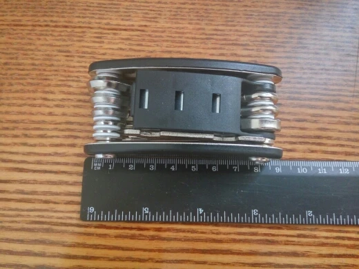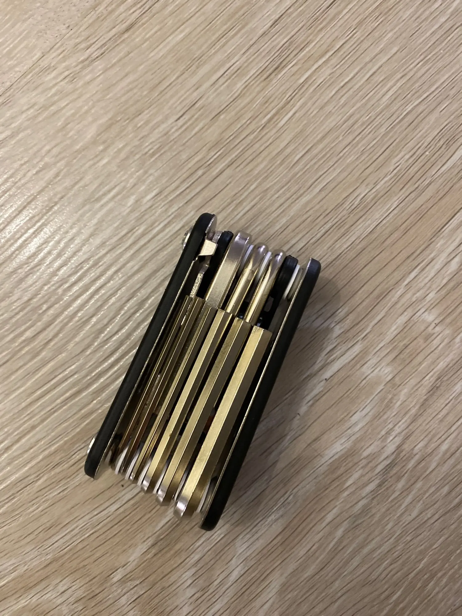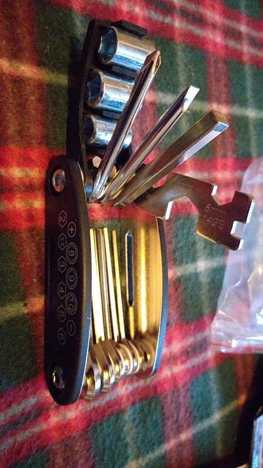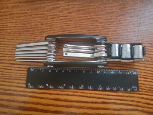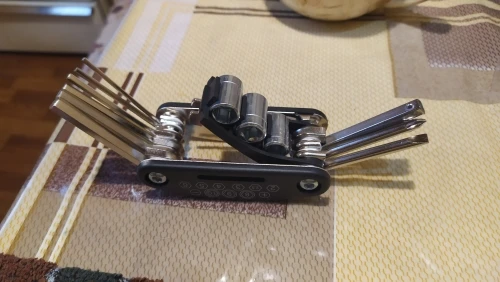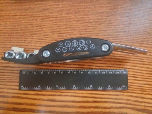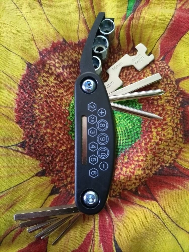 Мой первый и долгожданный мультитул, наконец то, размер небольшой, компактый, удобный, в принципе хватит насадок и ключей для обслуживания вела в дороге и дома, легко влезет в сумочку подседельную