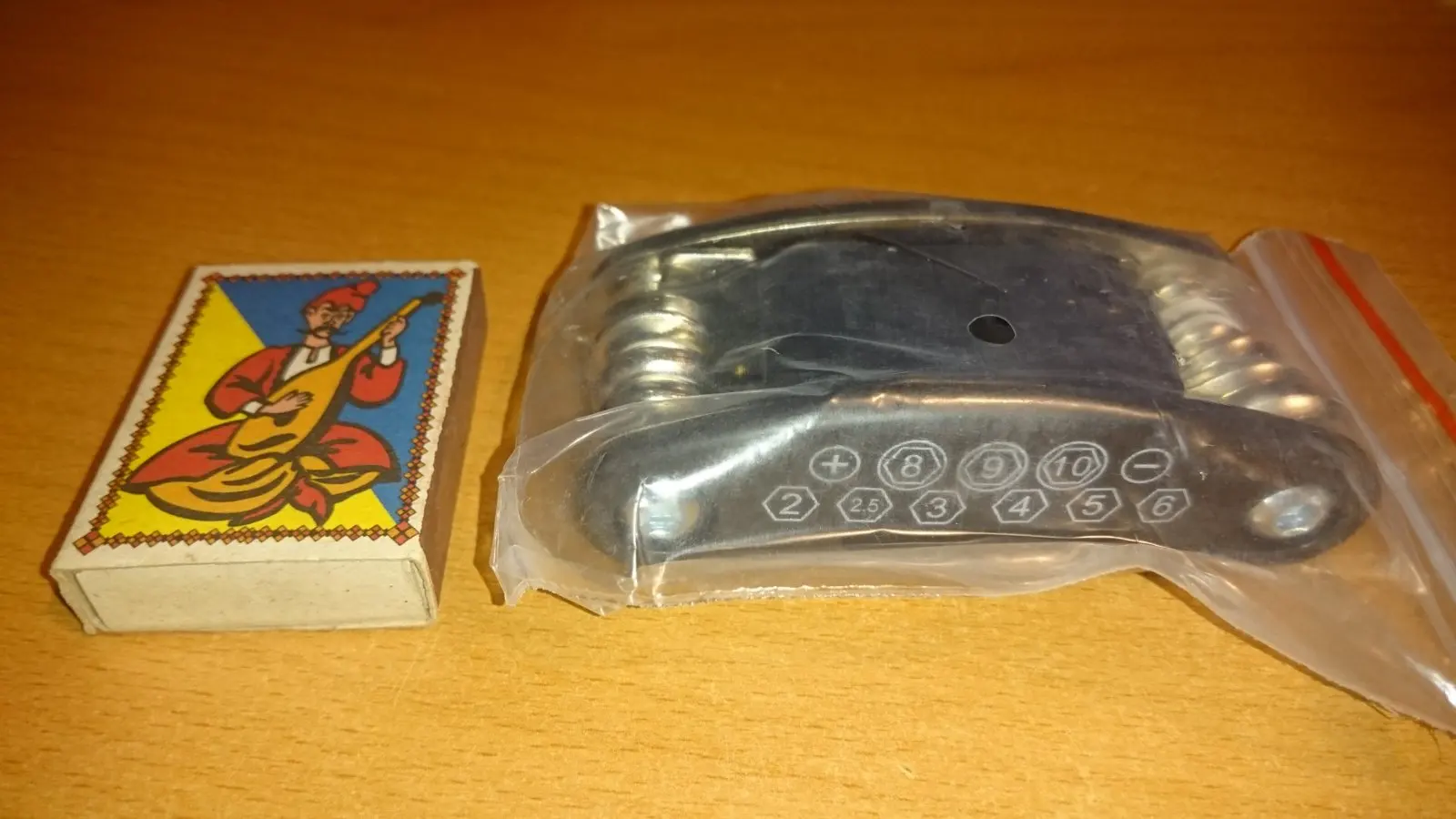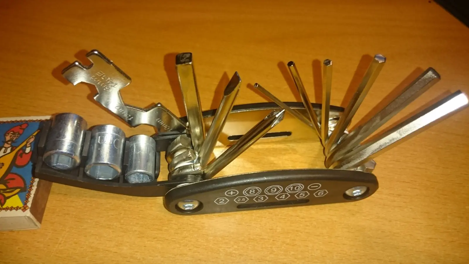 Комплект с шестигранными гаечными ключами, компасом и отверткой хорошего производства. Хорошее соотношение цены и качества. Рекомендуется для тех, кто хочет всегда иметь небольшой набор для вашего велосипеда, чтобы использовать в случае необходимости.