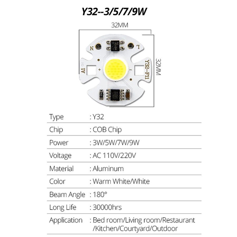 Светодиодный мини-чип Y27 Y32 COB, 220 В, 110 В, 3 Вт, 5 Вт, 7 Вт, ...