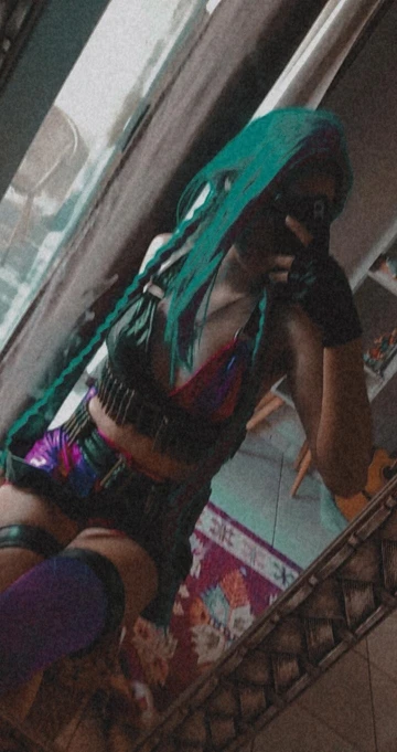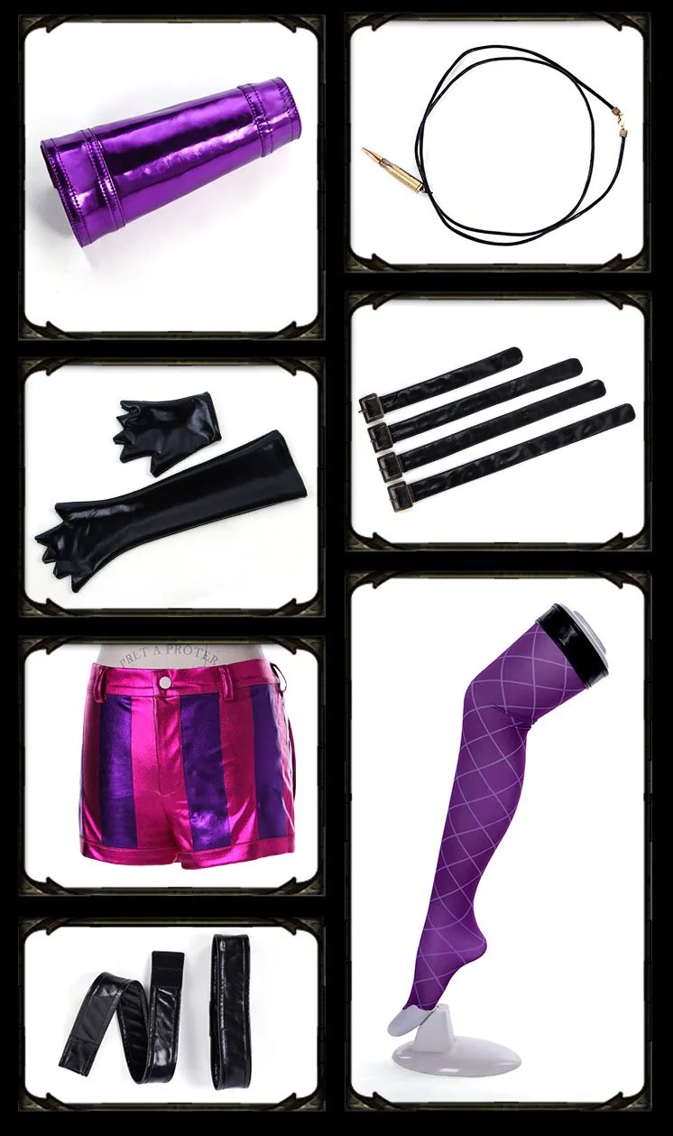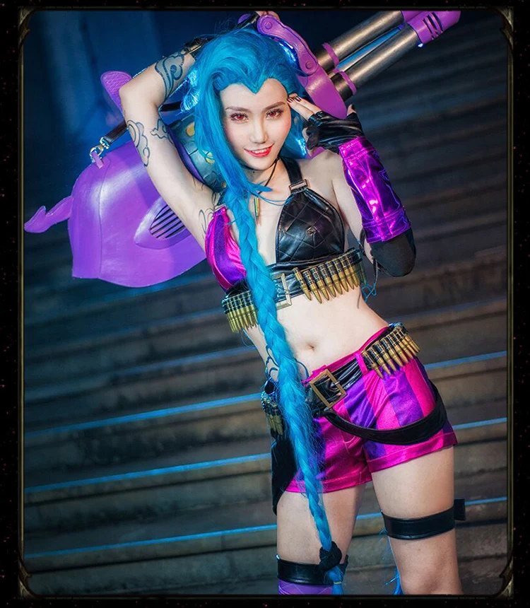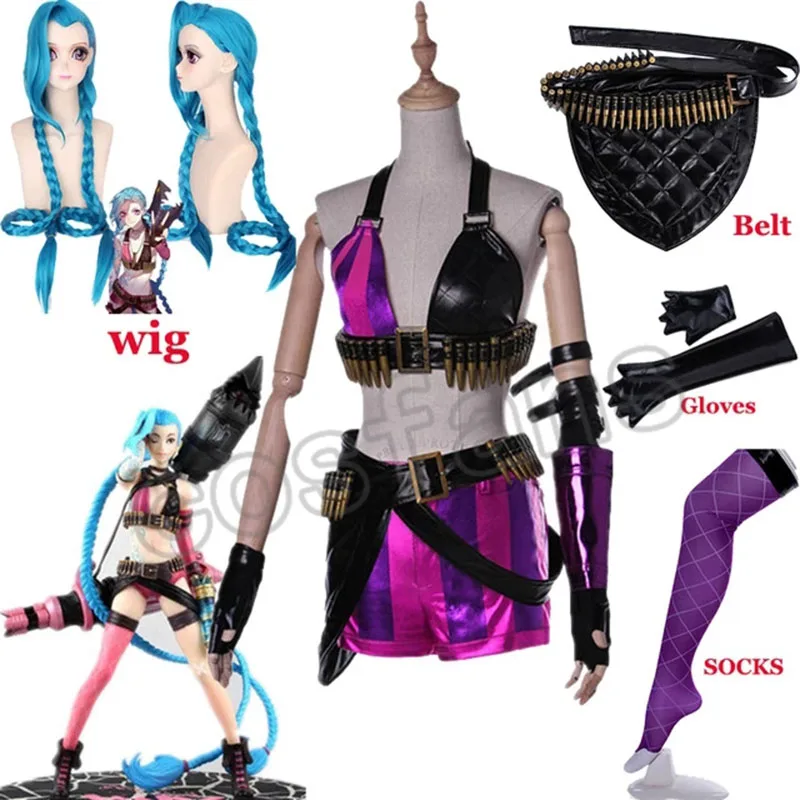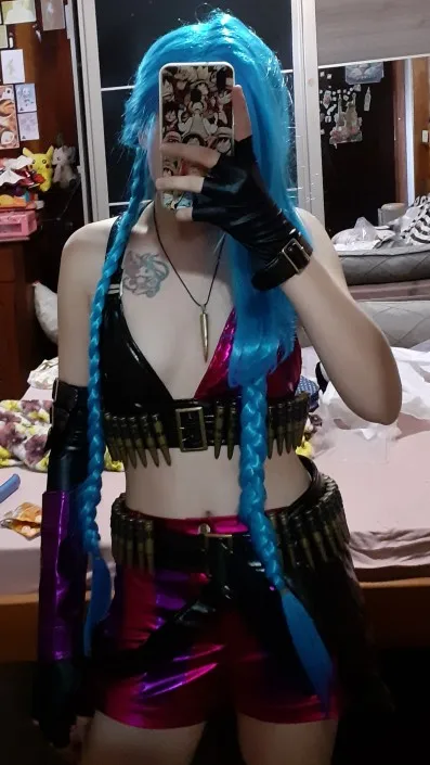 Одежда и аксессуары хороши, но парик ужасно, короткий, фотографии парика выглядят отлично, но нет! Парик имеет приблизительно 100 см, очень короткий для косплея jinx. Очень дорогой косплей, очень разочарован. Очень жаль. Если вы хотите купить этот костюм для косплея, покупайте только одежду. Парик отстой. Заплатите 510 долларов за косплей, и он идет с париком, так что это очень разочаровывает. Очень жаль.