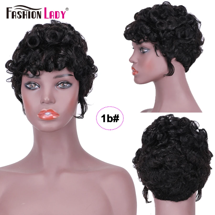 Парики короткие парики из человеческих волос для чернокожих женщин, кудрявые, бразильские, летние, коричневые, натуральные волосы без клея
