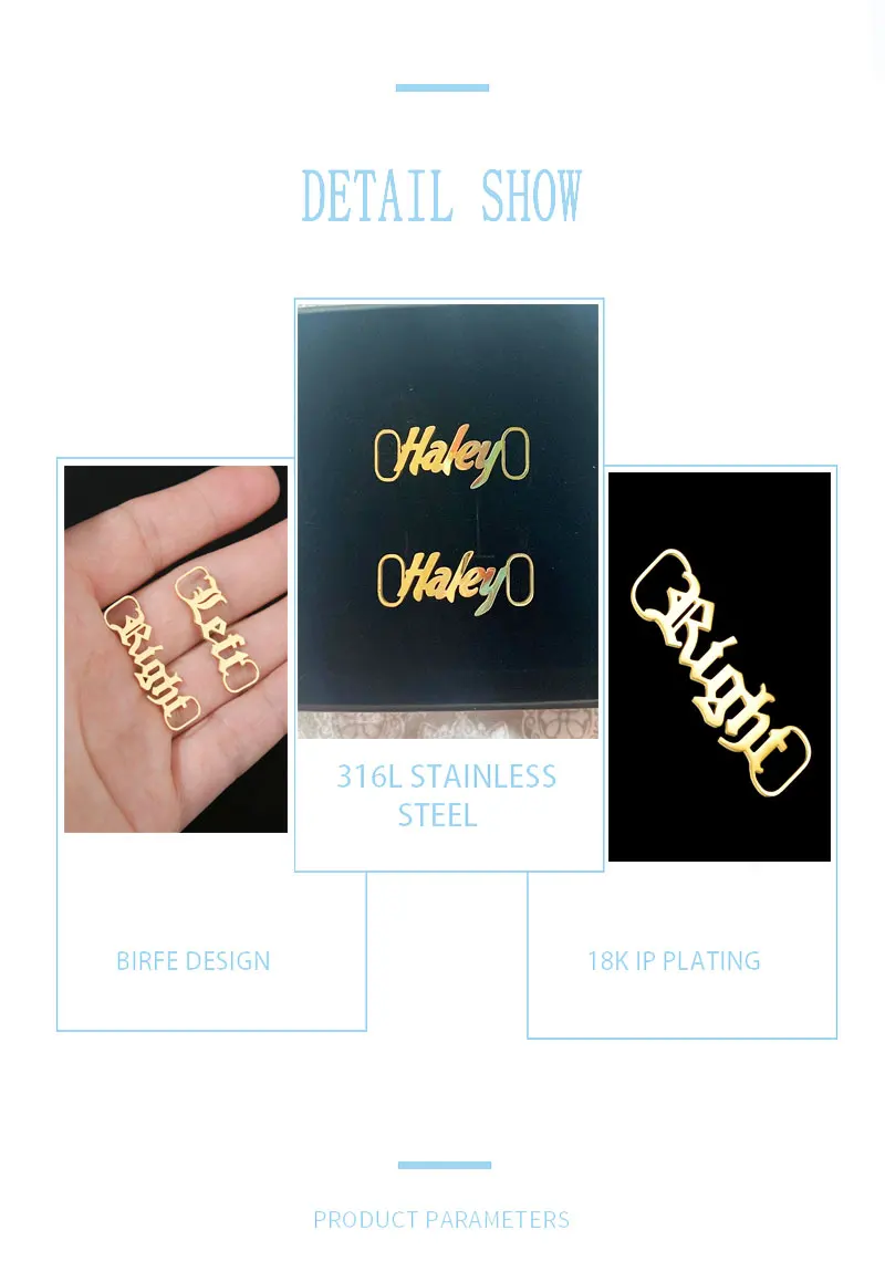 Обувная пряжка с именем на заказ, персонализированные буквы из нержавеющей стали для взрослых и детей, логотип на заказ, бирки для обуви для досуга