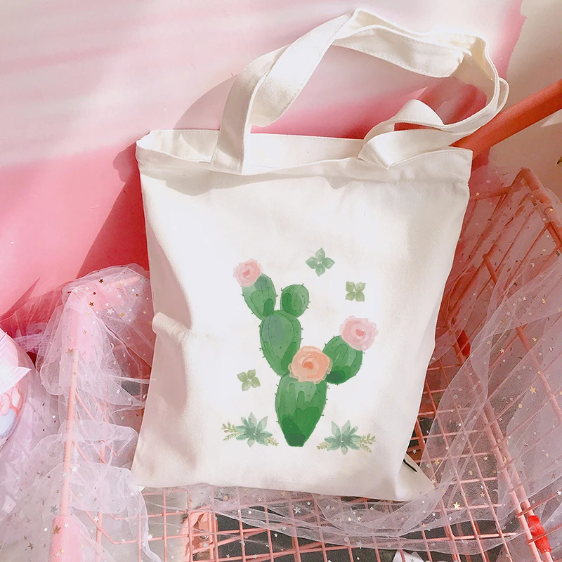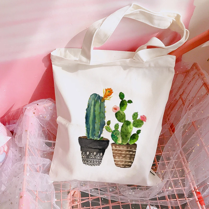 Холщовая Сумка на плечо с акварельным КАКТУСОМ, многоразовая дамская сумочка для покупок с принтом кактуса, вместительный тоут