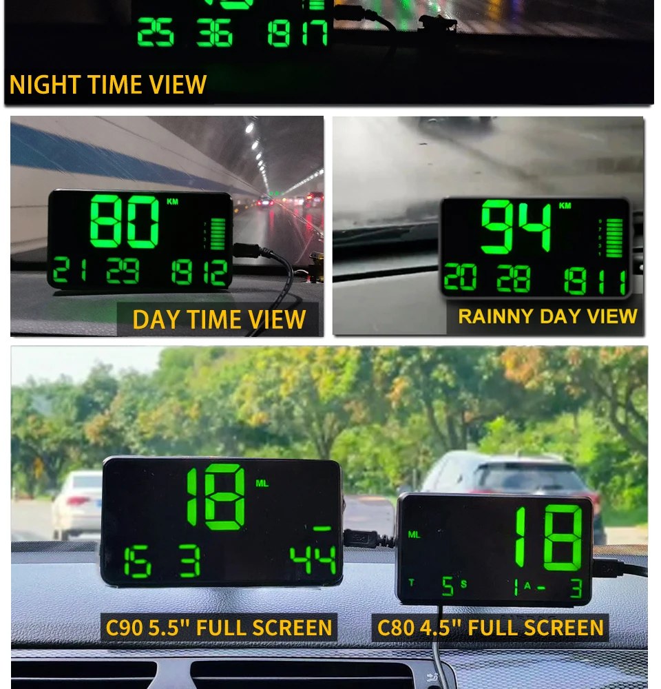 C90 цифровой измеритель скорости автомобиля и грузовика отслеживание в реальном времени Предупреждение лом скорости автомобильные часы GPS измеритель скорости дисплей автомобиля Hud отслеживание