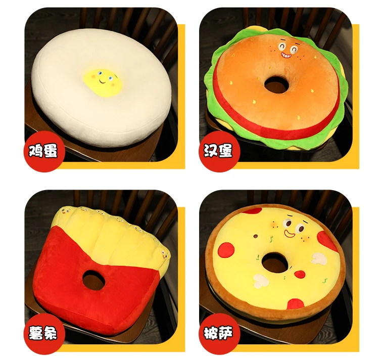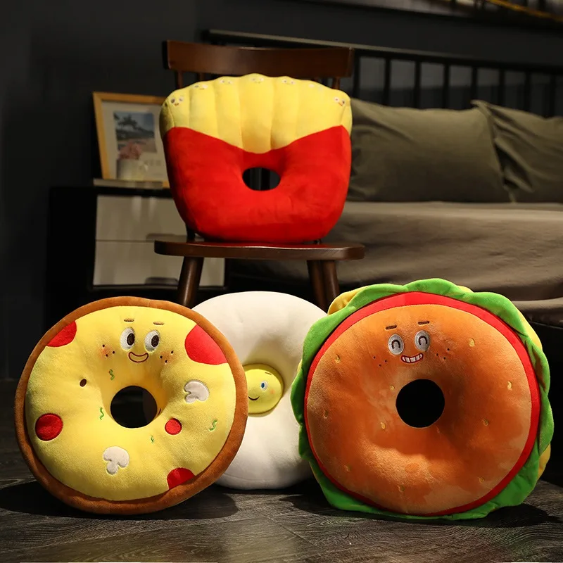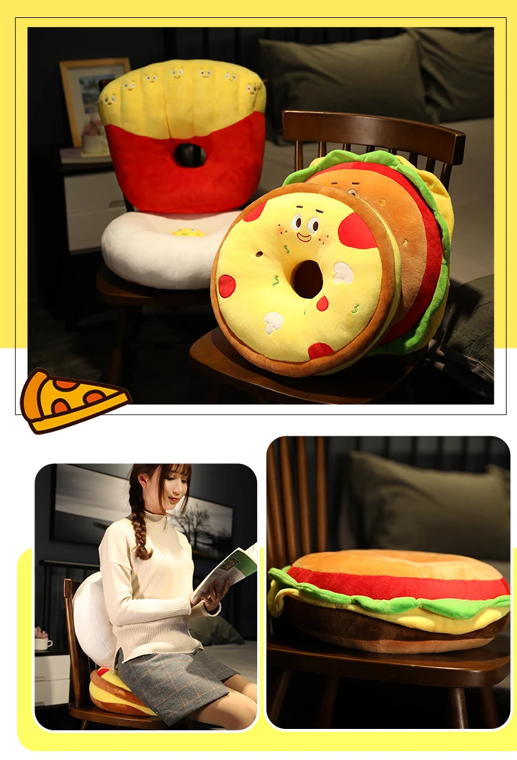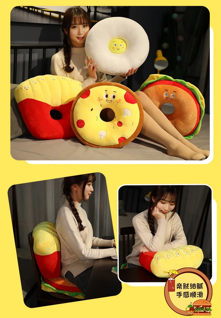 Подушка фаст-фуд, подушка, имитация гамбургера, картошки фри, пицца, яйцо, плюшевая игрушка, мягкая мультяшная Подушка на стул, кукла в подарок