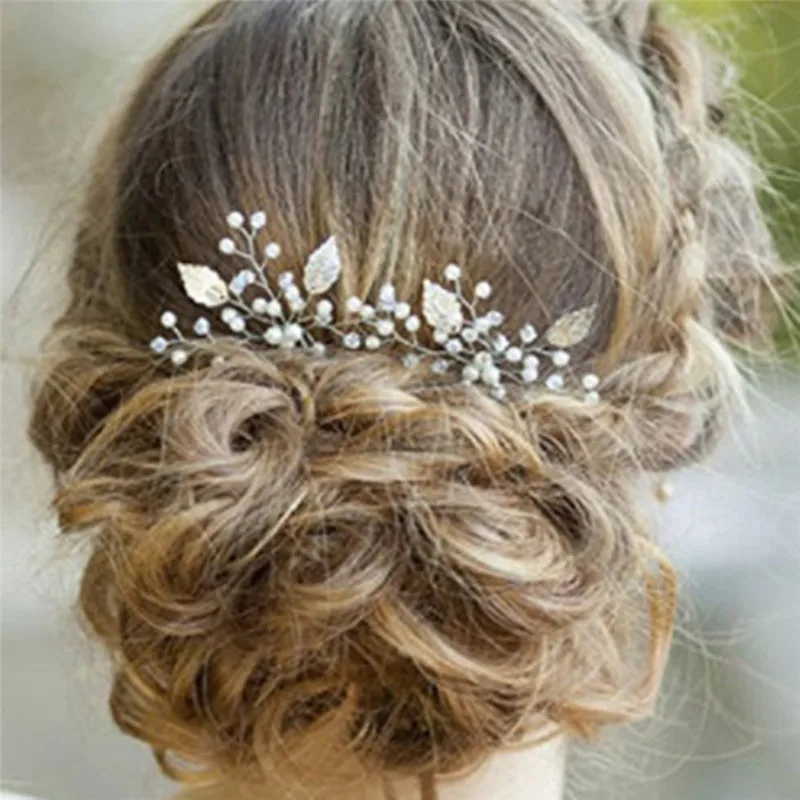 Элегантные роскошные цветочные свадебные гребни для волос головной убор для выпускного свадебные аксессуары для волос Золотые листья украшения для волос жемчужные Заколки Для Волос