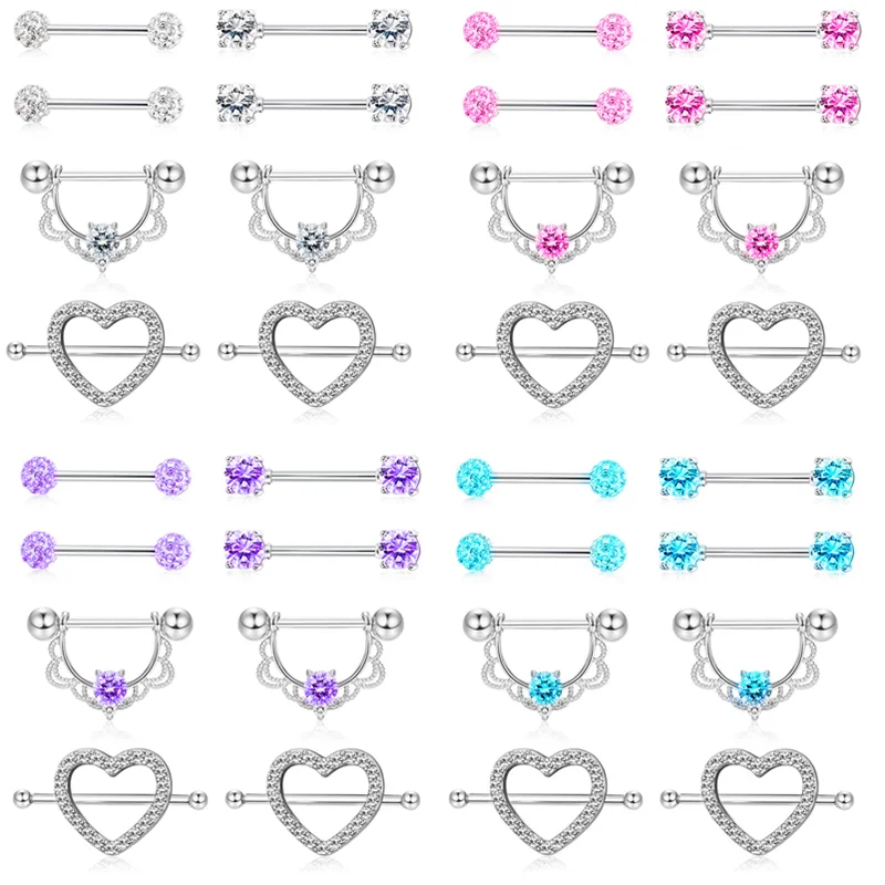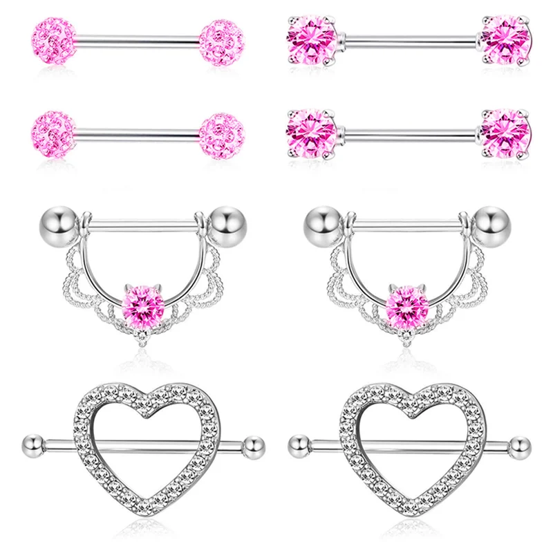 Кольцо для пирсинга сосков в форме сердца из нержавеющей стали, 14 г, набор со штангой для сосков, очаровательное кольцо для сосков, набор для пирсинга