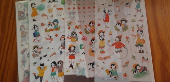 Los diseños me encantan, pero las pegatinas son diminutas, y el papel es muy malo,demasiado brillante. La impresión de la imagen no está mal, pero se borra fácilmente y algunas pegatinas ya se han despegado...