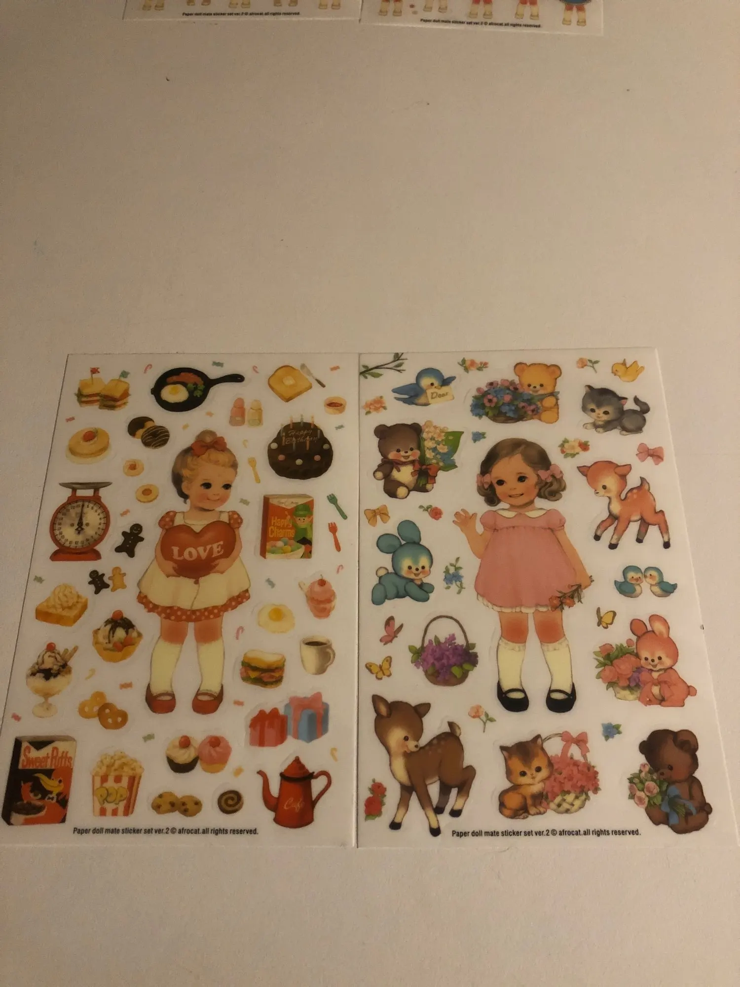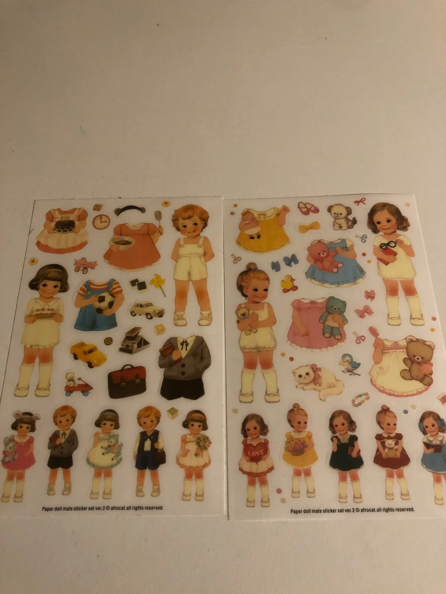 Очень классные наклейки в винтажном стиле. Тонкие и на глянцевой прозрачной основе. Некоторые наклейки сделаны так, чтобы одевать кукол в наряды, но не факт, что потом можно будет безболезненно снять наклейку.