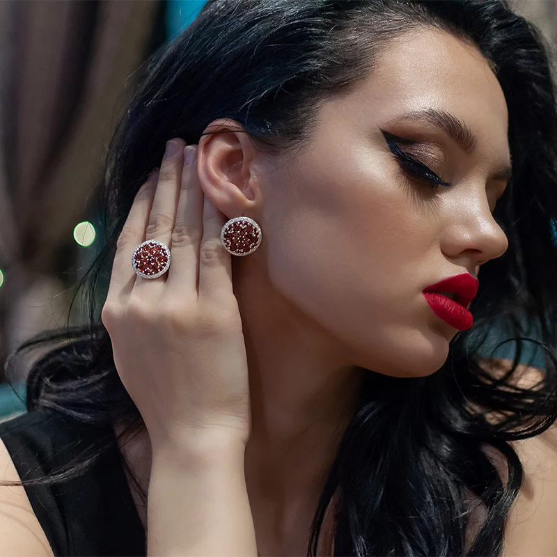 Серьги и кольцо женские из серебра 925 пробы, с натуральным красным гранатом набор украшений для женщин карата