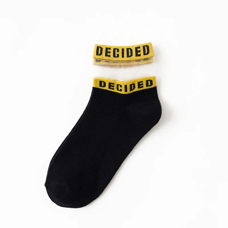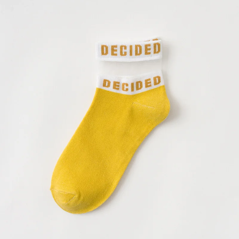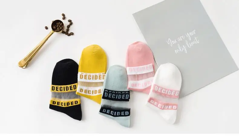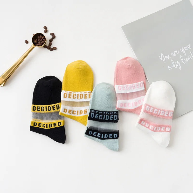5 пар, женские летние хлопковые носки с разноцветными буквами, тонкие носки, однотонные милые носки