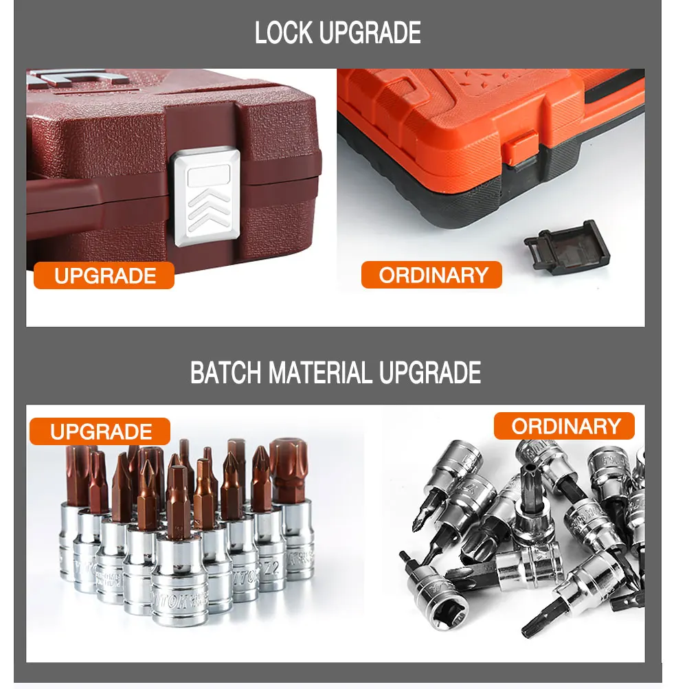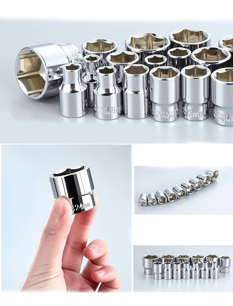 2. В сокете используется высококачественная хромово-ванадиевая сталь холодного пресса, крутящий момент на 50% выше, чем у углеродистой стали, хороший эффект предотвращения ржавчины. Партия головы принимает cr-v материалы, более сильная твердость, твердость выше.