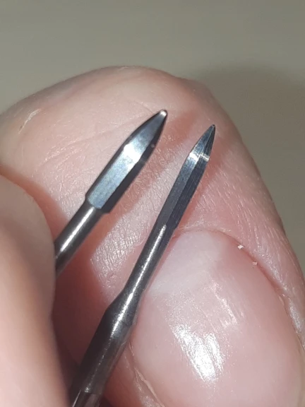 Фреза не погнутая, ровная, в аппарате не бьет, мягко убирает птеригий. Пришла очень быстро, спасибо продавцу)