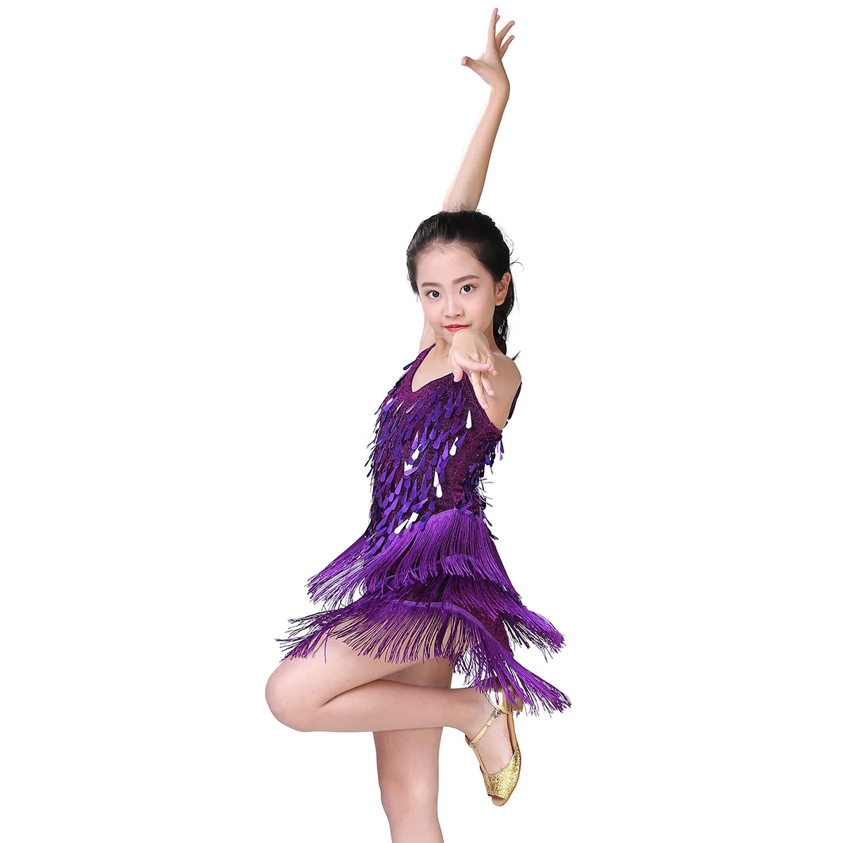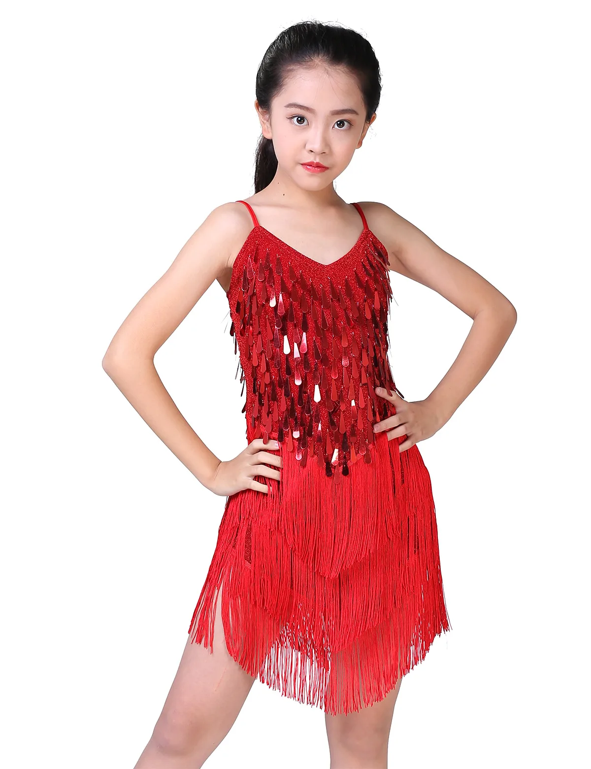 Детское платье для латиноамериканских танцев, платье с блестками и кисточками, костюмы для латиноамериканских танцев, платье для сальсы, балета, танго, румбы, бальной комнаты, танцевальная одежда
