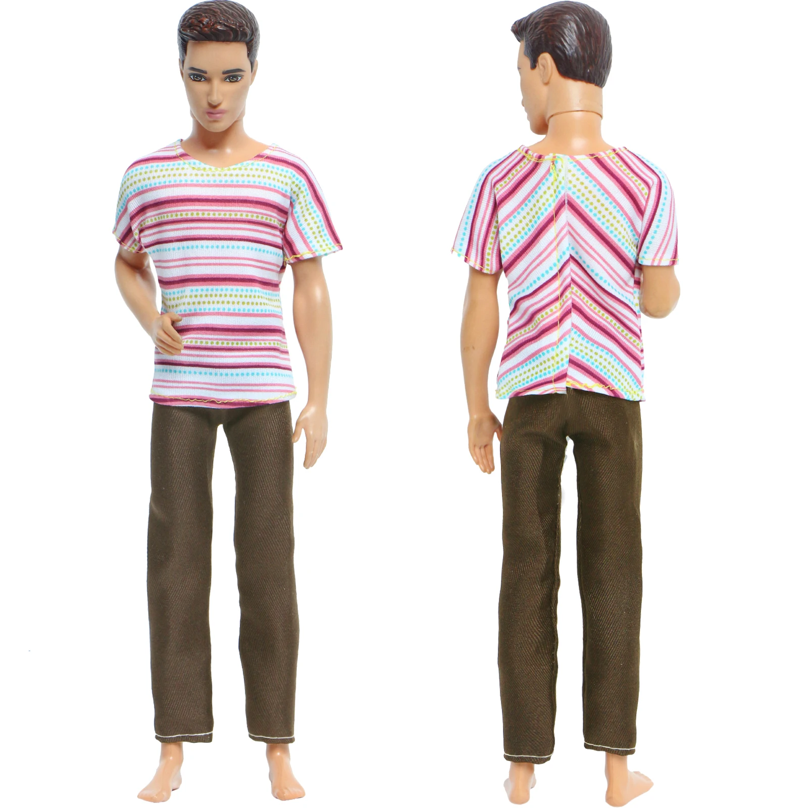 Наряд для куклы для мальчиков ручной работы, летняя повседневная одежда, полосатая футболка, коричневые брюки, штаны для куклы Кена, аксессуары для одежды, детские игрушки