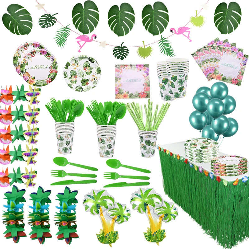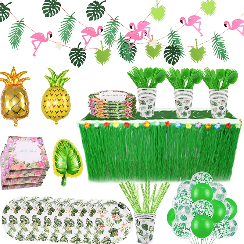 Украшения для вечеринки в гавайском стиле Луо Фламинго Aloha одноразовая посуда пальмовых листьев латексные шары для Гавайи тропический Для летних вечеринок