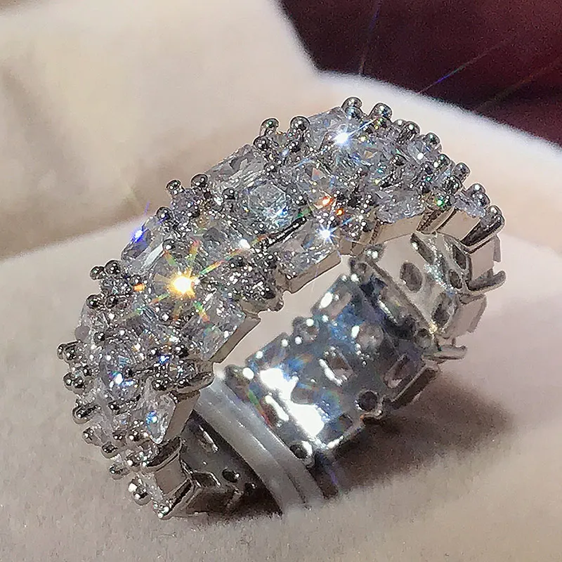 Женское Обручальное кольцо с посеребренным покрытием, инкрустированное фианитом