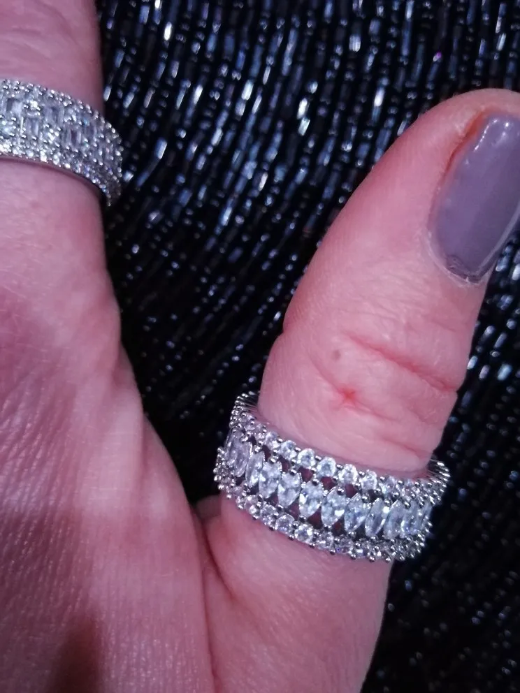 Ich muss ganze Zeit den Ring angucken, so schön sieht der aus! Die Steine sind wie Diamanten! Was soll ich sagen?! Allerersten ist der Verkäufer sehr anständig. Ich habe 1 Ring nicht bekommen, alles andere ist angekommen! Der Verkäufer hat sofort den Ring verschickt ohne irgendeinen Aufstand zu machen! Immer wieder verlängert die Bestellung! Wirklich SUPER! Dann der Schmuck : wirklich sehr hochwertig und wunderschön am blinken und blitzern! Ich trage sie nicht ganze Zeit, ich arbeite im Krankenhaus und da ist nicht gestattet Schmuck zu tragen. Aber wenn ich zu Hause bin, dann.... Aber schaut selbst wie schön sie sind! Mein lieber Verkäufer, vielen Dank für diesen wunderschönen Schmuck! Ich wünsche dir frohes neues Jahr und Gesundheit die und deine Familie!