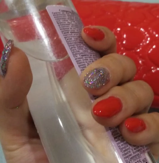 Лаки хорошие, розовый плотный, блесток много, жёлтый на прозрачной основе, блесток в половину меньше.
