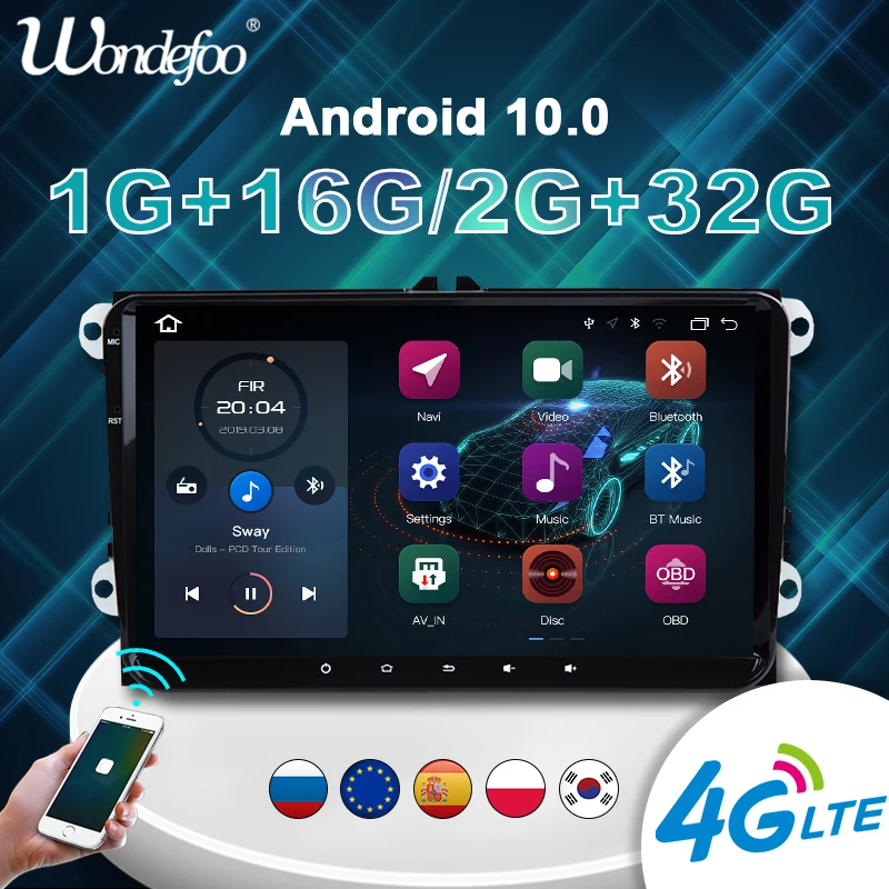 автомагнитола 2 din андроид 2 DIN Android 10 Автомагнитолы радио для VW Volkswagen Golf Tiguan Passat b7 b6 SEAT leon Skoda yeti Octavia навигация авто аудио экран