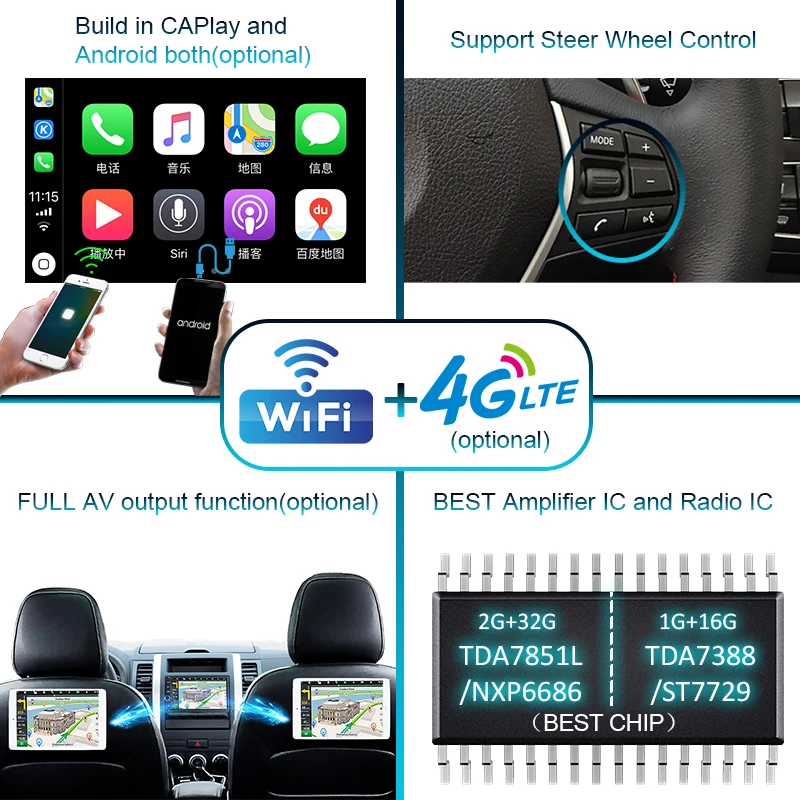 Данное Радио имеет функцию полного вывода AV (дополнительно), эта функция доставит много удовольствия детям и вашей семье, которые находятся на заднем сиденье в долгой дороге. Они могут смотреть телевизор, фильмы, мультфильмы, видео Youtube, мВ и другие видео. На рынке у большинства магазинных радиостанций нет функции выхода AV.