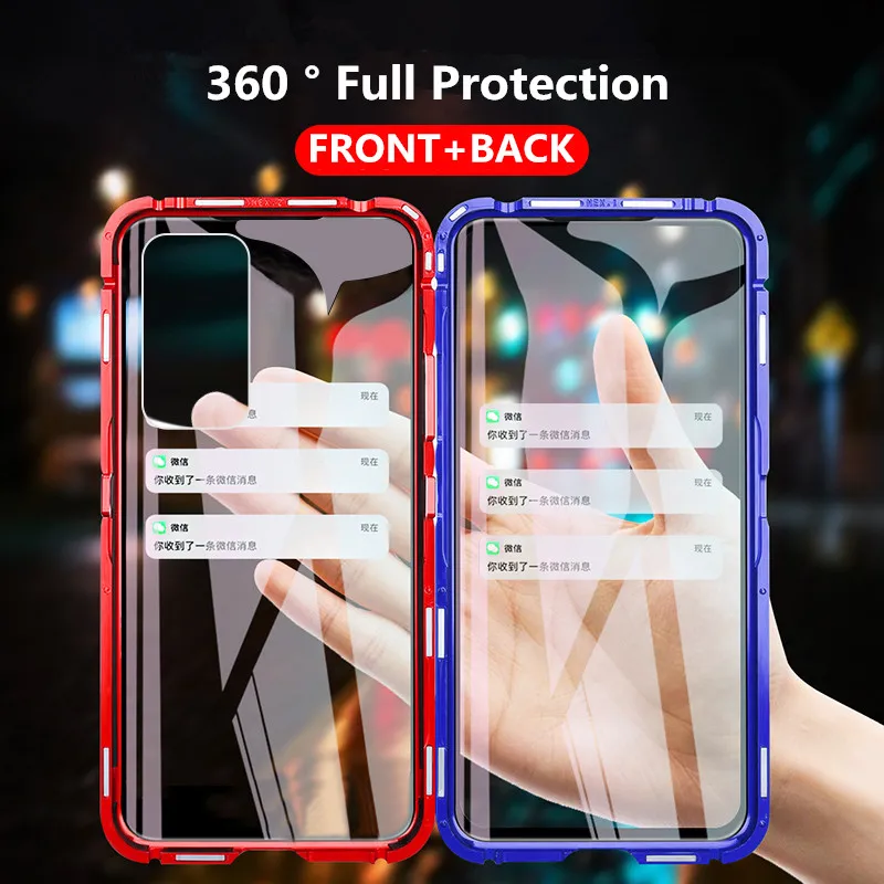 Магнитный чехол с двойным боковым закаленным стеклом для OPPO Realm...