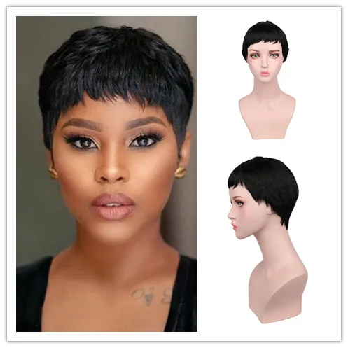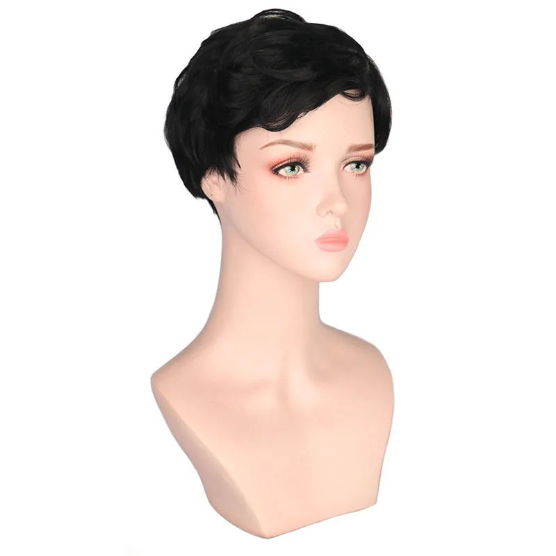 Причудливые Женские синтетические парики из натуральных черных волос, термостойкие волосы, короткий парик для женщин