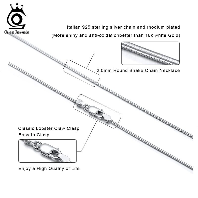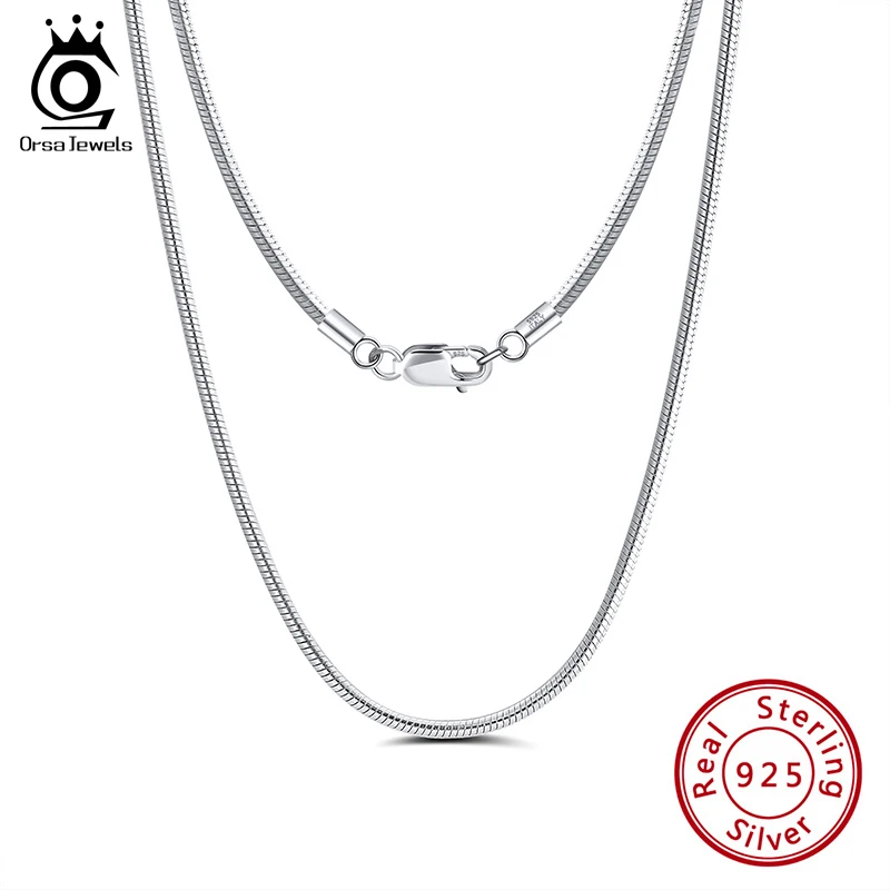 ORSA JEWELS, итальянское серебро 925 пробы, 2,0 мм, круглая цепочка в виде змеи, ожерелье из стерлингового серебра, мужские ожерелья, цепочки, ювелирные изделия SC31