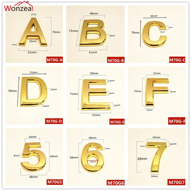 7-сантиметровый современный табличка золотого цвета, номер двери дома, английские буквы, адрес двери отеля, табличка из АБС-пластика