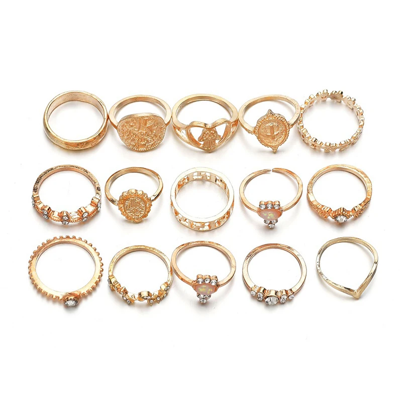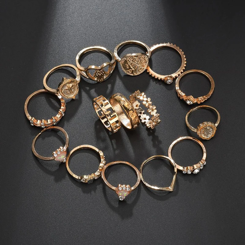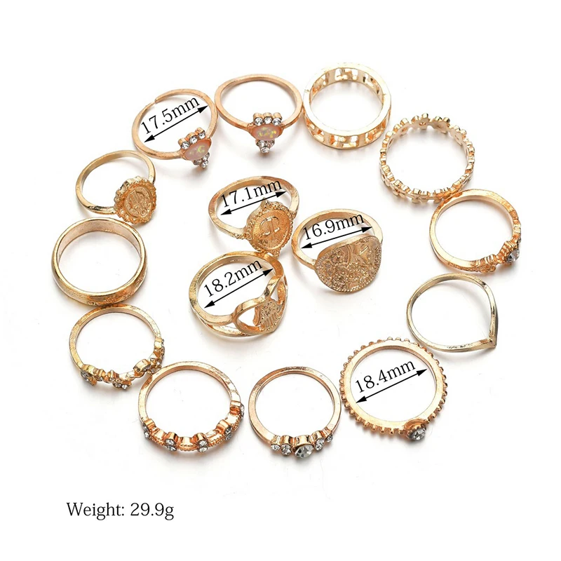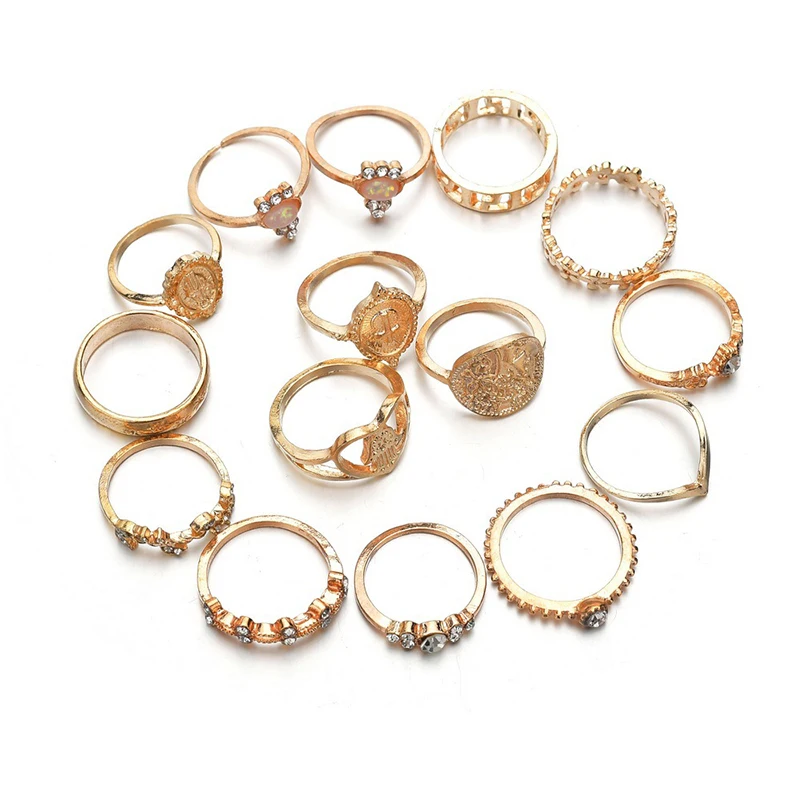 Набор колец и венков в богемном стиле, 15 шт.компл., золотистые укр...