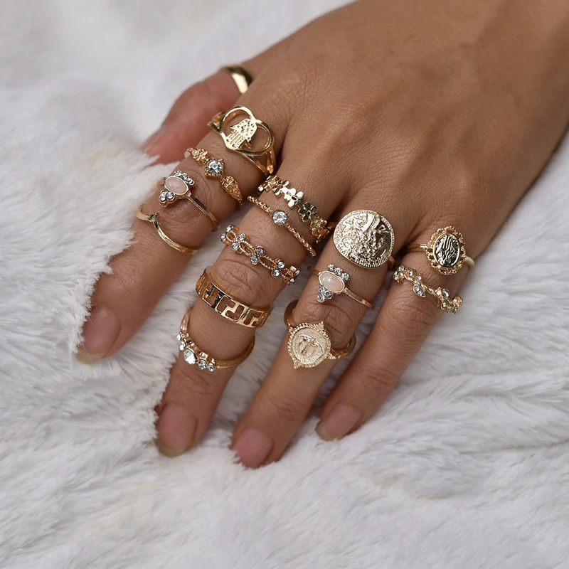 15 шт.компл., винтажное женское кольцо с сердечками, рука Фатимы, к...