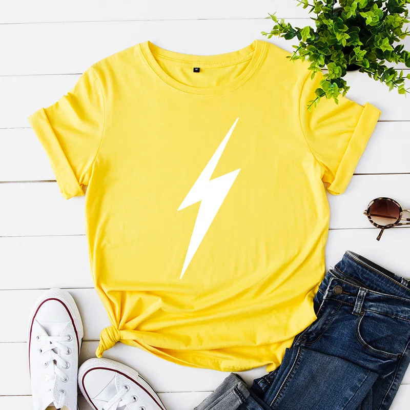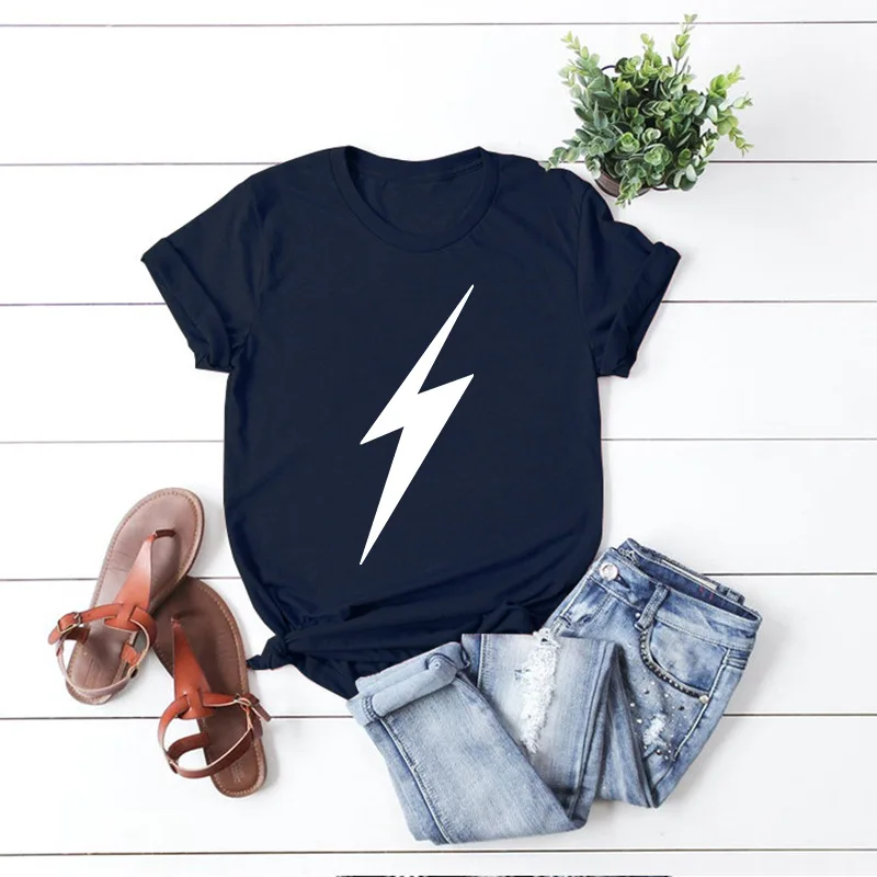Новая летняя футболка с принтом молнии, Женские Простые футболки 2021 с круглым вырезом, женская футболка с коротким рукавом, Прямая поставка