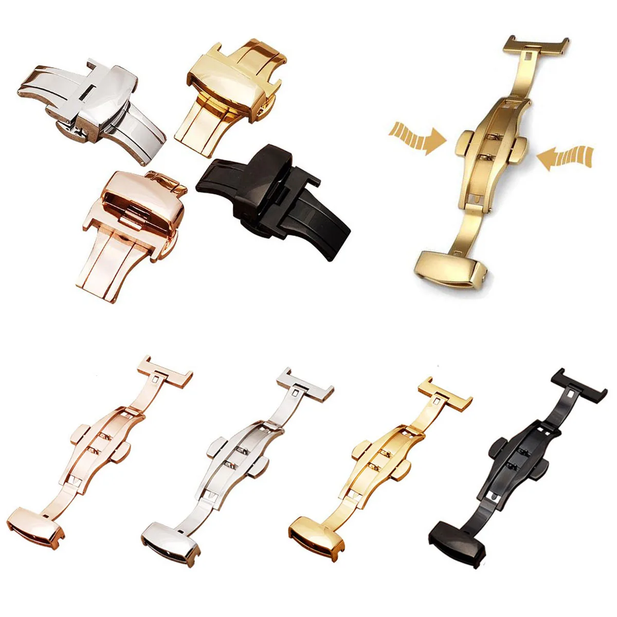 Автоматическая застежка-бабочка для часов, Автоматическая Пряжка из нержавеющей стали с двойным кликом, 10 мм, 12 мм, 14 мм, 16 мм, 18 мм, 20 мм, 22 мм, 24 мм