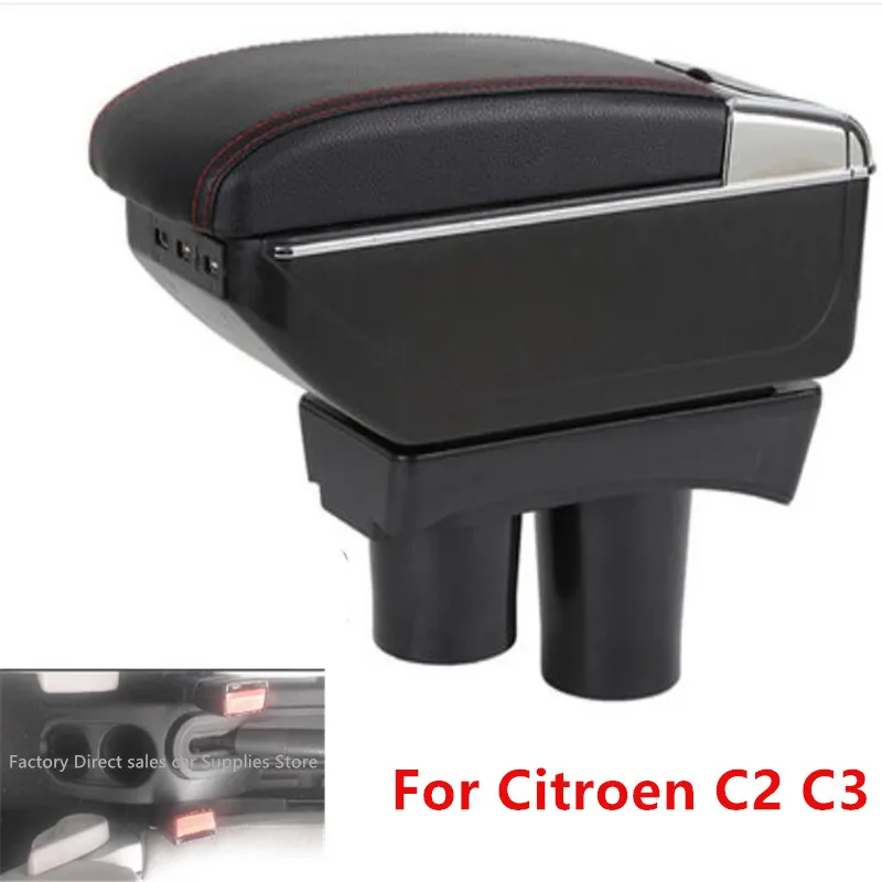 Подлокотник для Citroen C2 C3, подлокотник для Citroen C2, аксессуары для модификации подстаканников со светодиодной подсветкой USB
