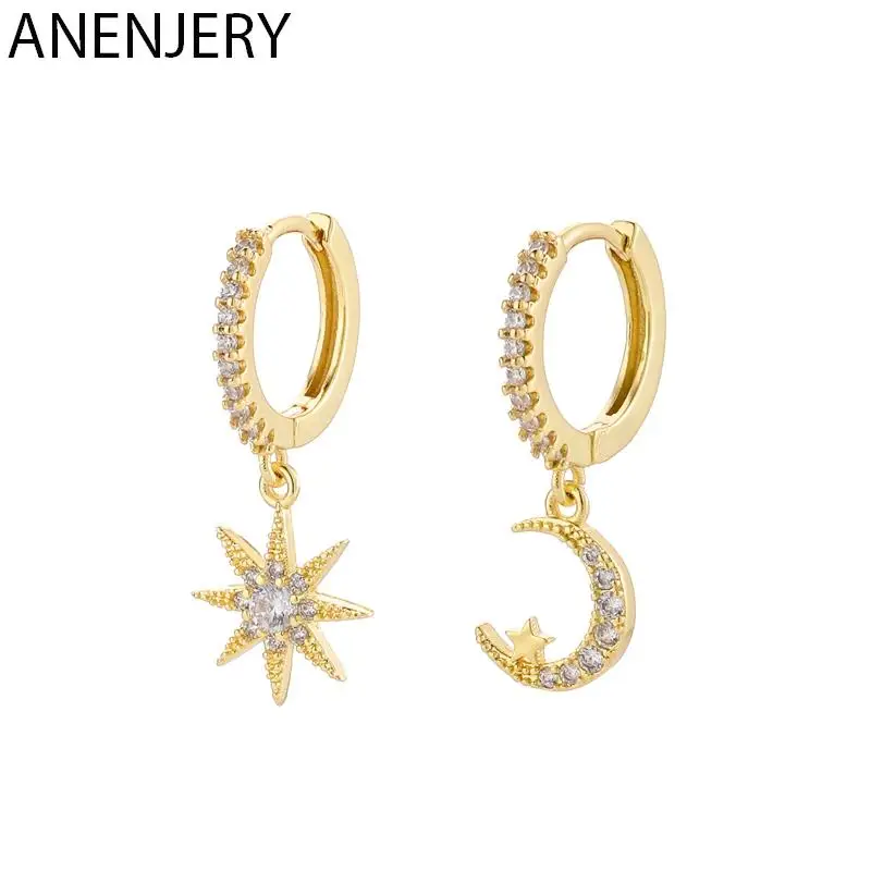 ANENJERY, 925 пробы, серебряные серьги, 6 шт., наборы, жемчужная мозаика, циркон, самолет, звезда, Луна и Вселенная, серьги-кольца, наборы для женщин