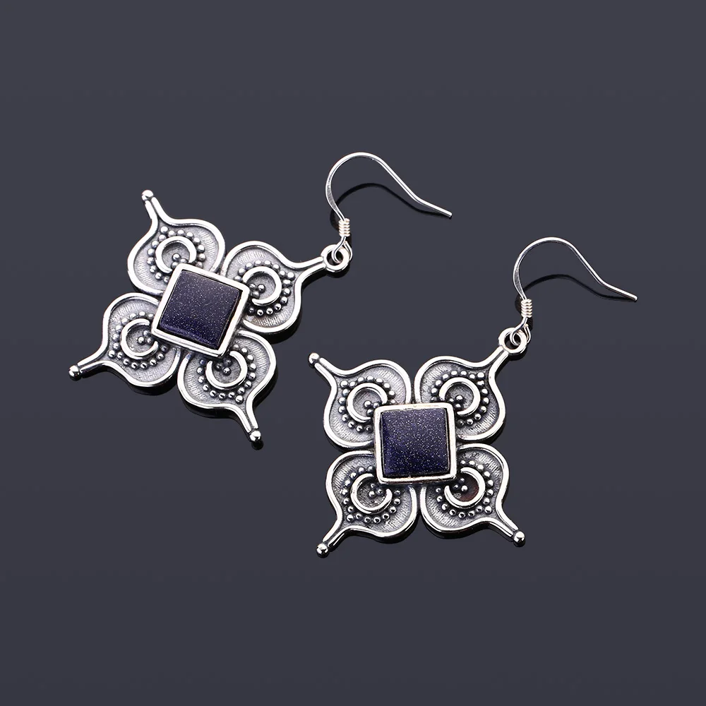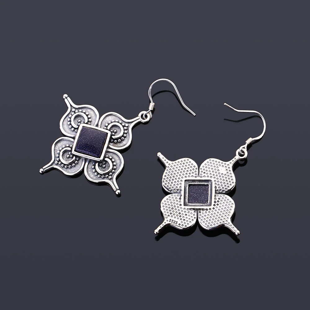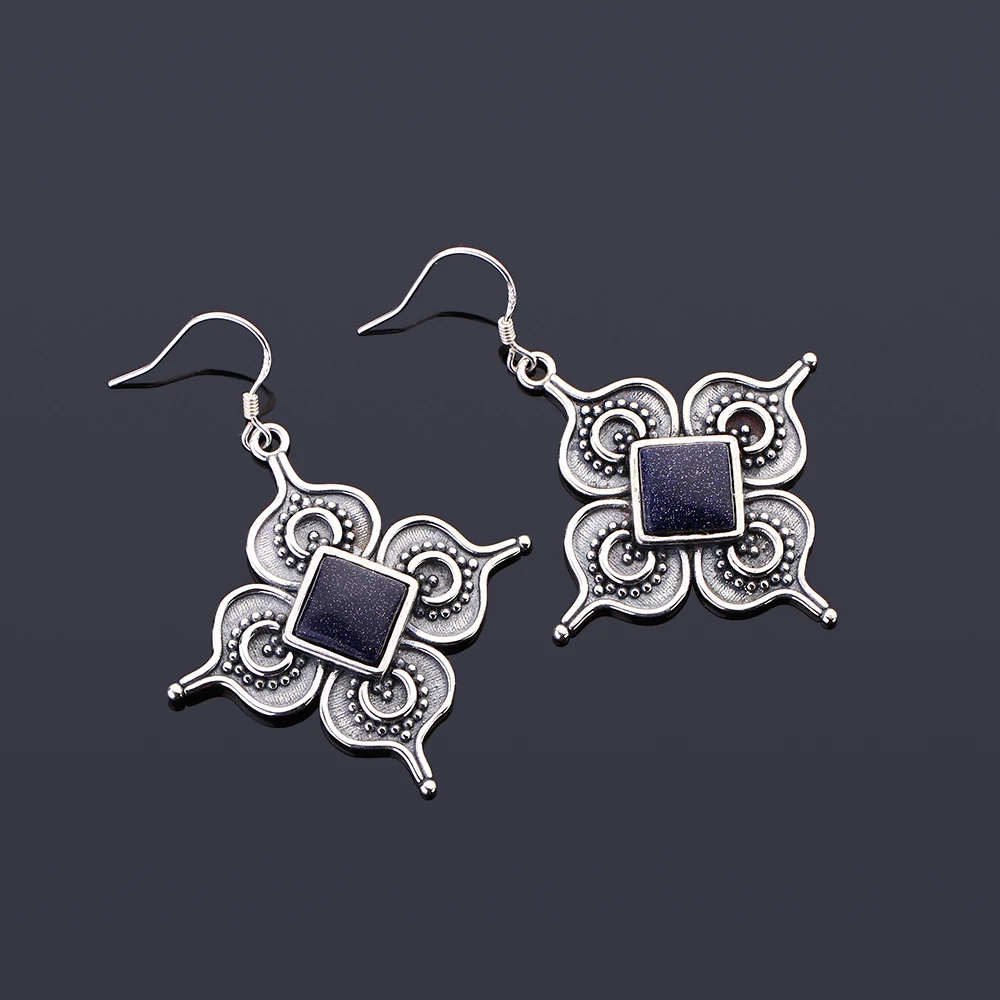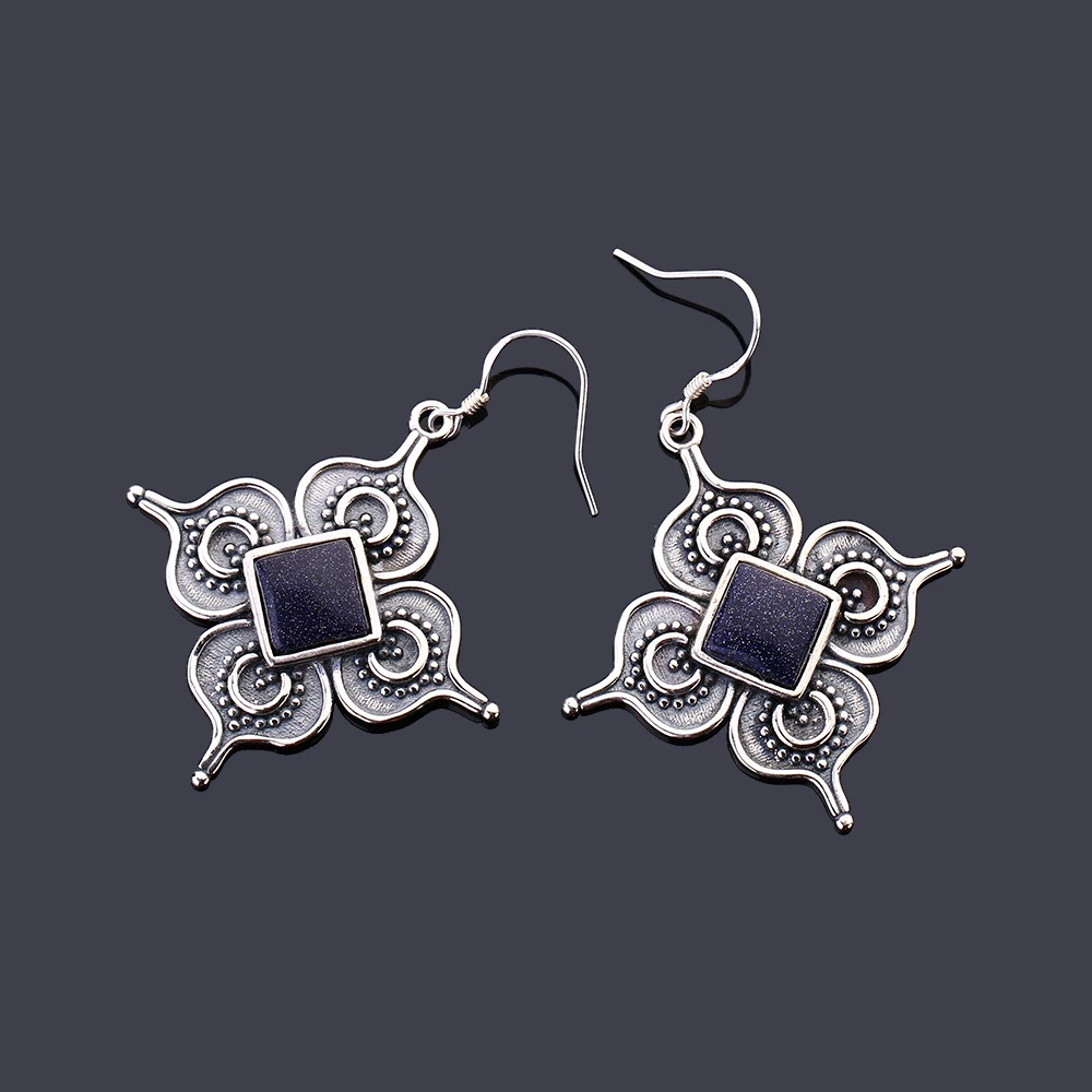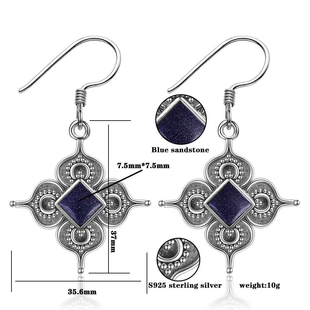 Женские серьги-подвески из серебра 925 пробы, с натуральным белым или синим песчаником