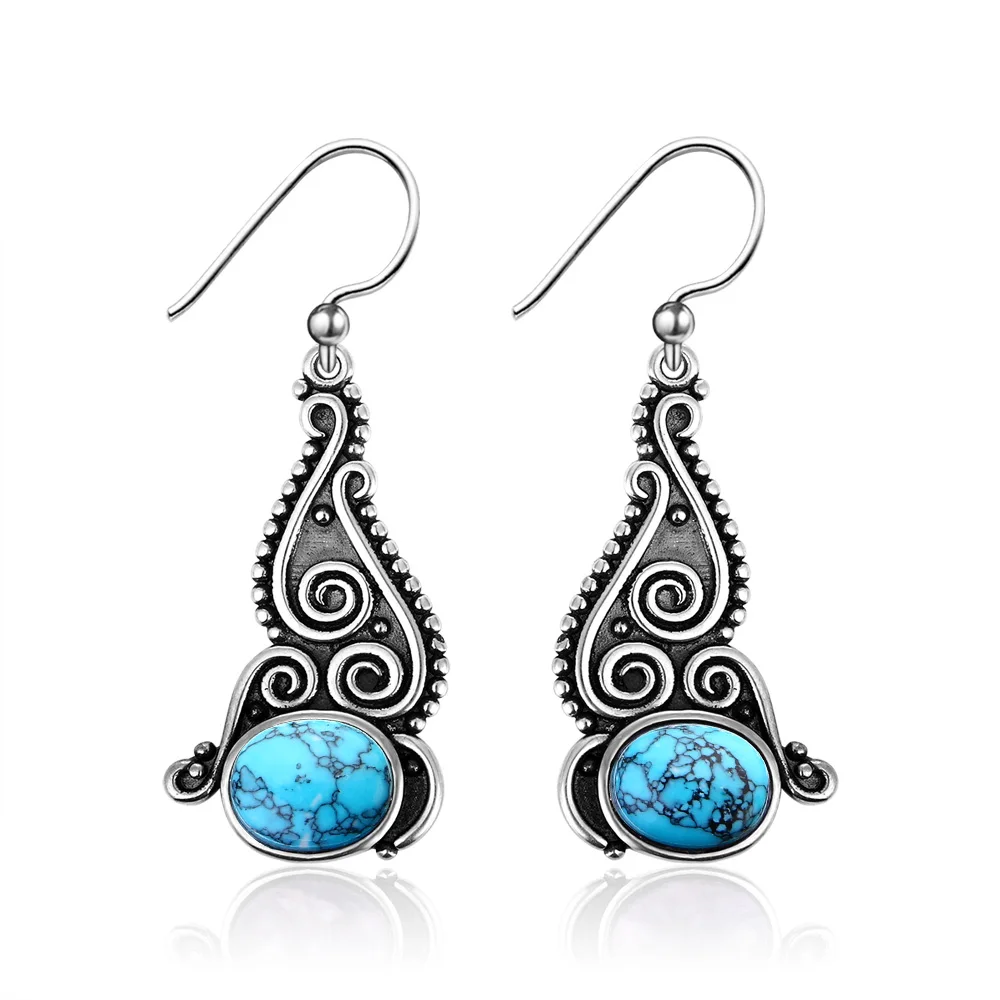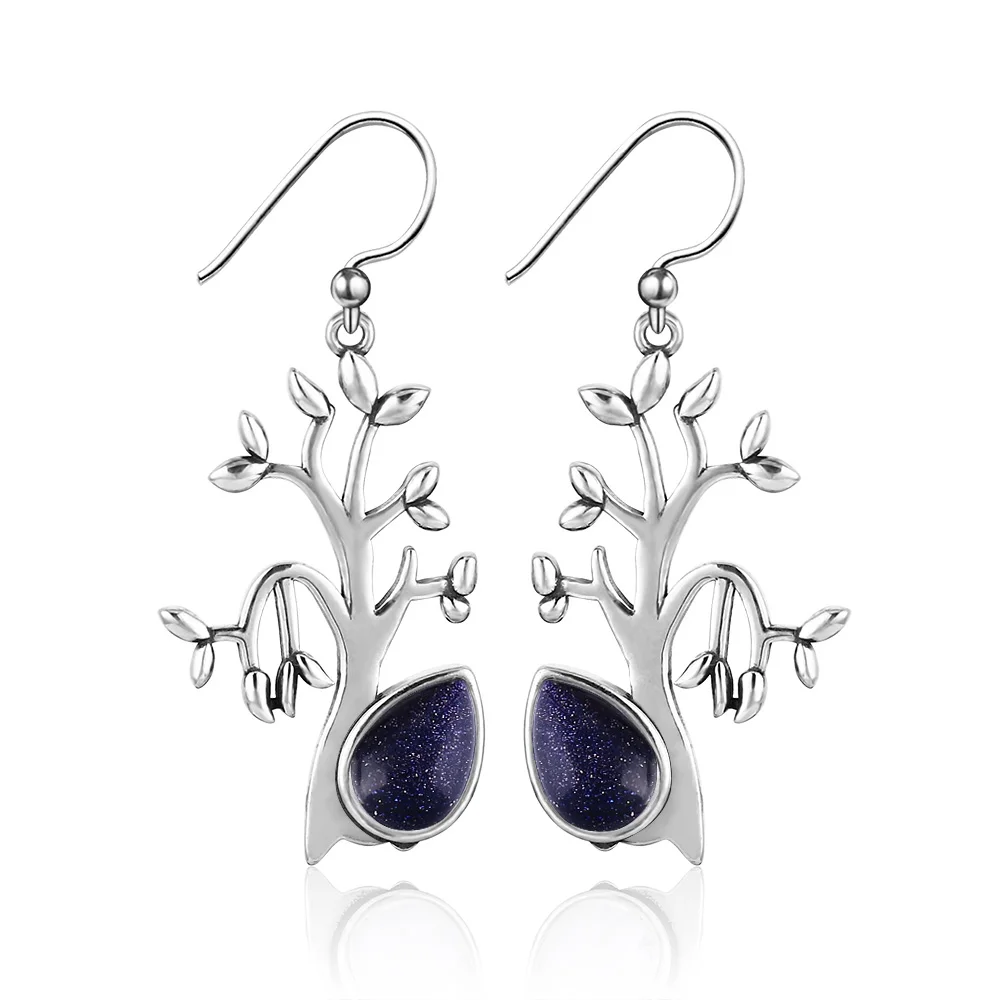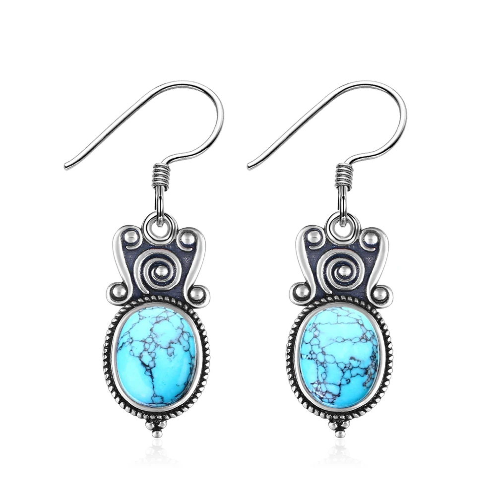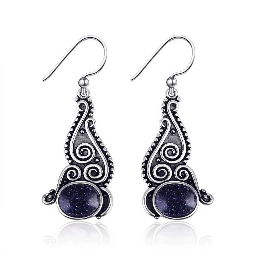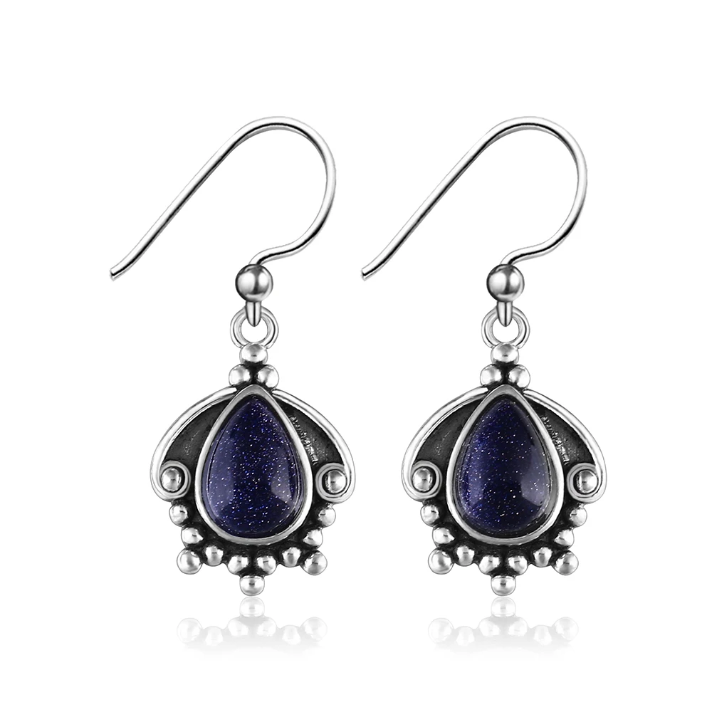 Женские серьги-подвески из серебра 925 пробы, с натуральным белым или синим песчаником
