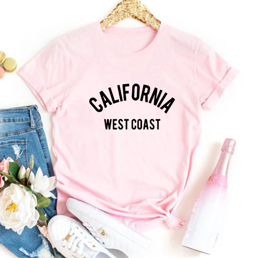 Летняя футболка California West Coast, Женская забавная футболка с коротким рукавом, женская футболка, белая футболка, Женская хлопчатобумажная рубашка