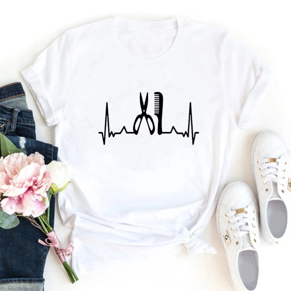 Футболка женская хлопковая с рисунком сердцебиения, Повседневная забавная топ свободного покроя для парикмахеров, черный белый цвет, на лето