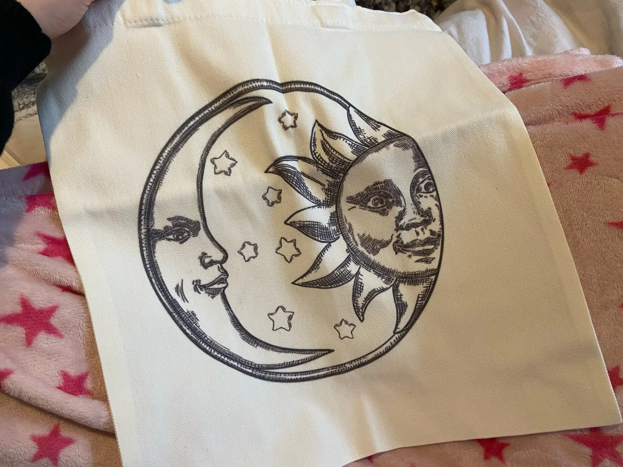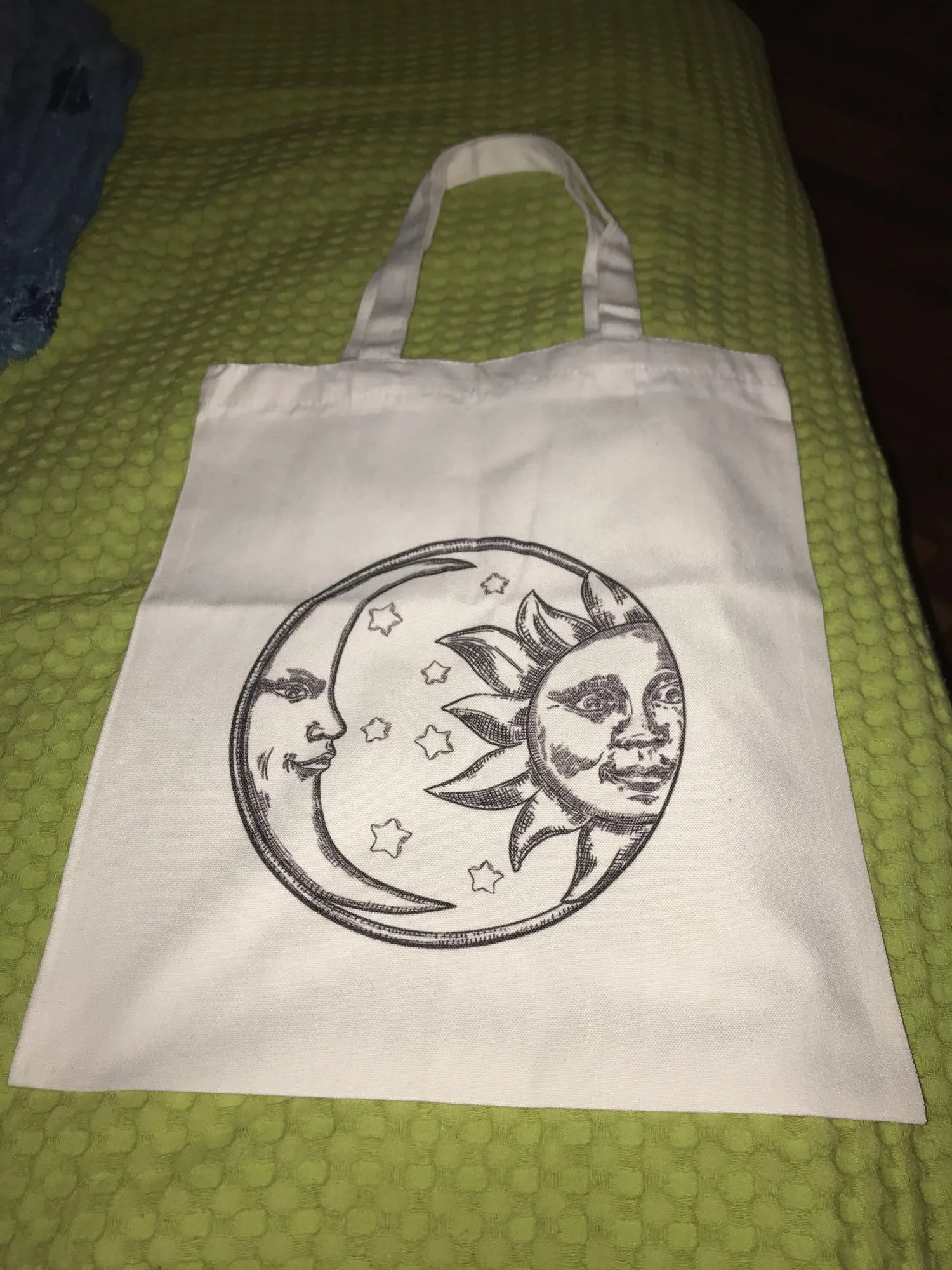 Рисунок немного неровно расположен относительно центра сумки, мой внутренний перфекционист крикает, а так качество классное, швы ровные, пришло за 3 недели, никакого запаха, смело заказывай, принцесса.
