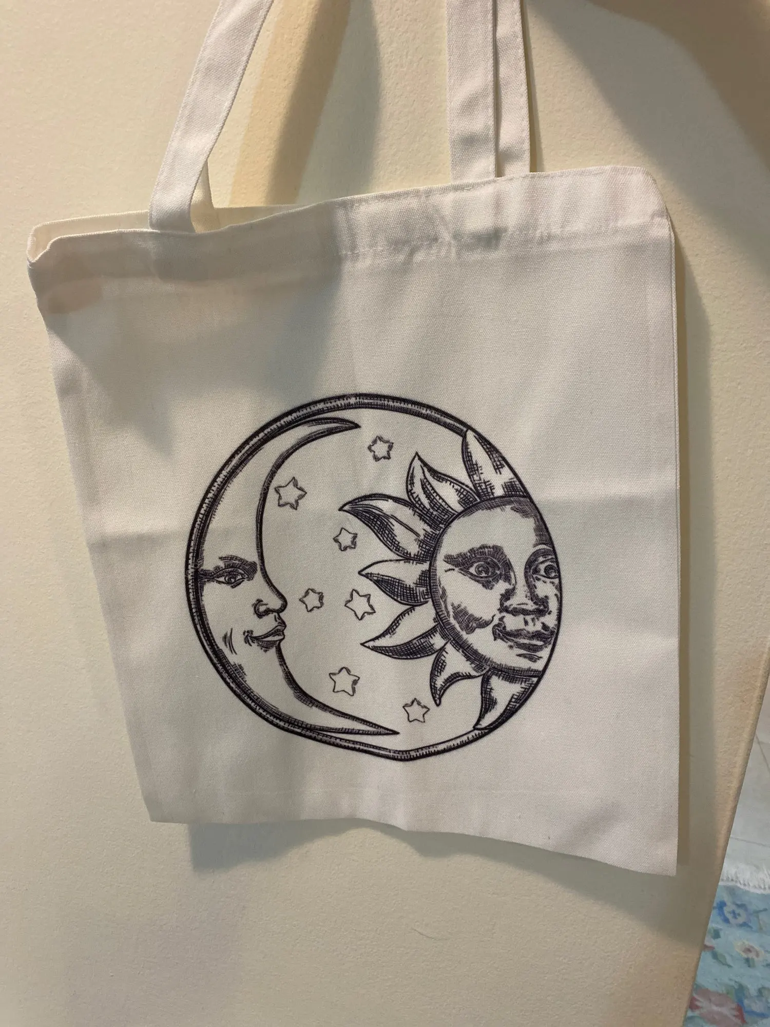 Винтажная холщовая наплечная сумка большой емкости с принтом мифического солнца