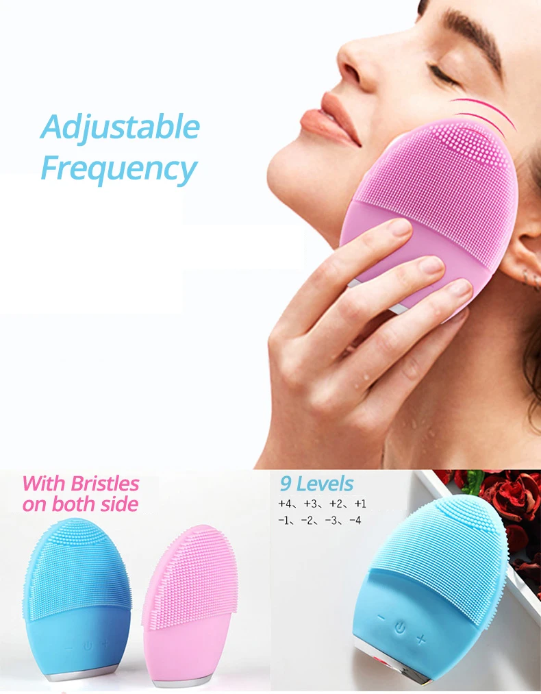 Sonic электрическое Силиконовое очищающее средство для лица, Очищающая щетка для лица с двойной щетиной, водонепроницаемая черная Чистка Пор