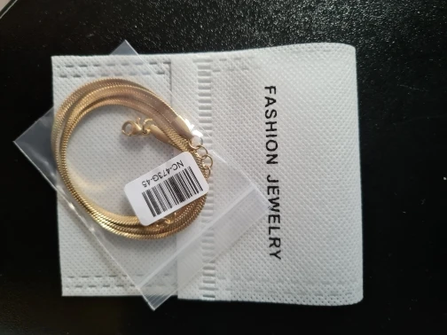 Прибыло довольно быстро и хорошо упаковано, каждый предмет поставляется в полиэтиленовом пакете с этикеткой и маленьким тканевым пакетом в комплекте. Качество на ощупь превосходное. Я рекомендую выбрать самый большой размер в цепочке, так как это просто для измерения. Он не оставляет никаких пятен на моей коже, и он не был неокрашен. Я рекомендую продавцу и обязательно буду покупать здесь.