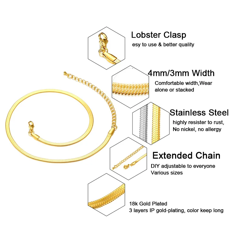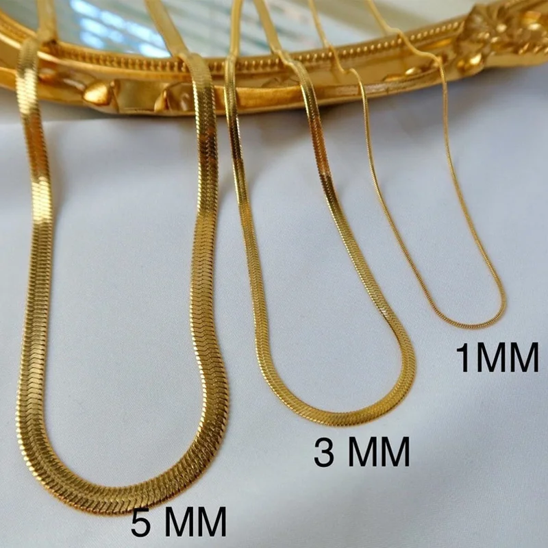 100% нержавеющая сталь змея с рисунком елочки цепочка ожерелье для женщин, золотой цвет колье, 1 мм2 мм3 мм4 мм5 мм