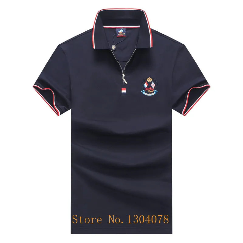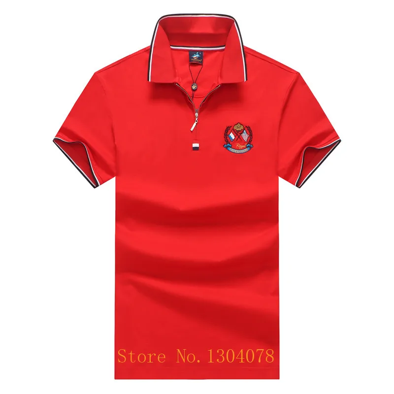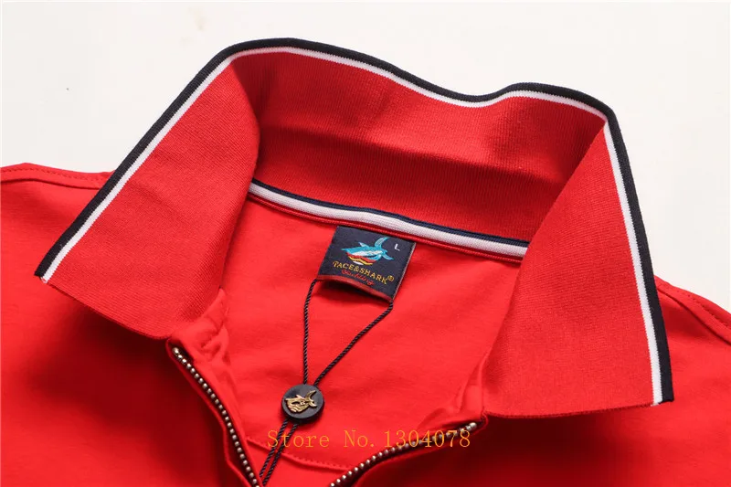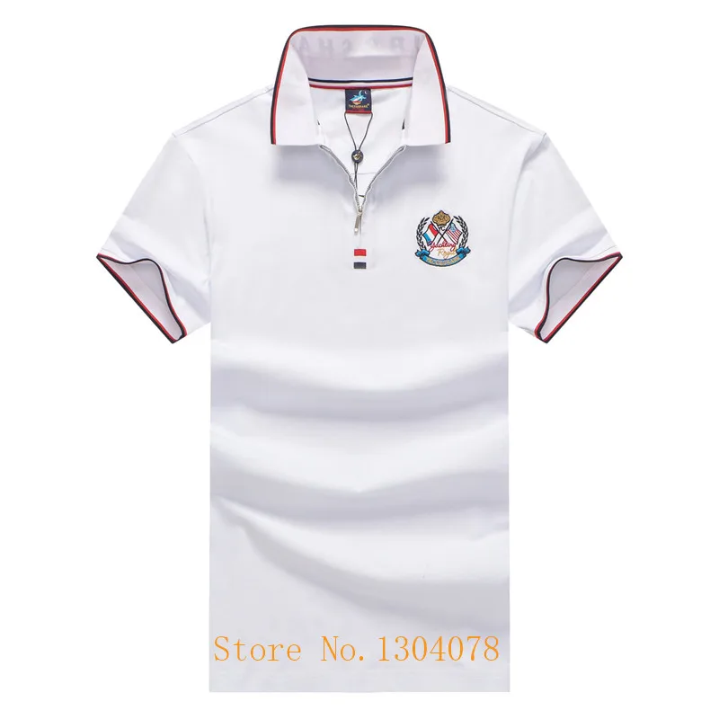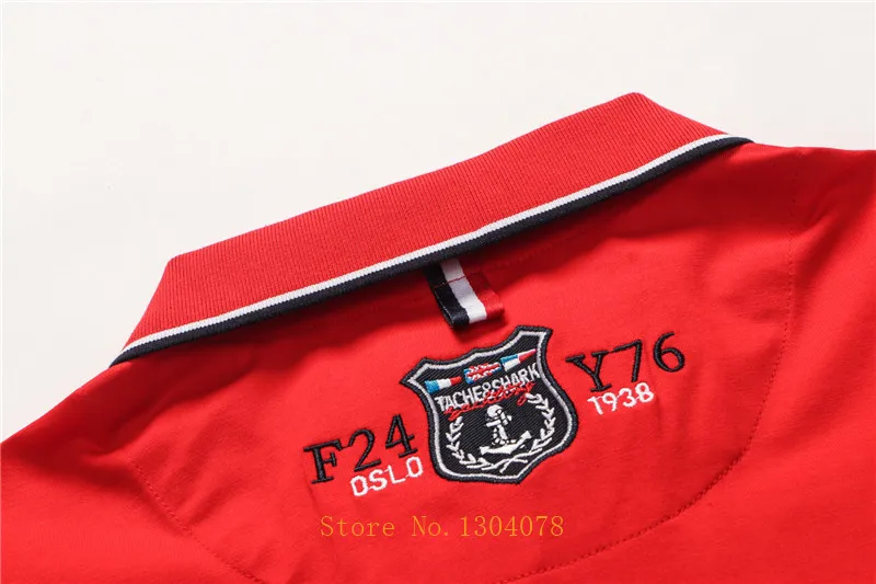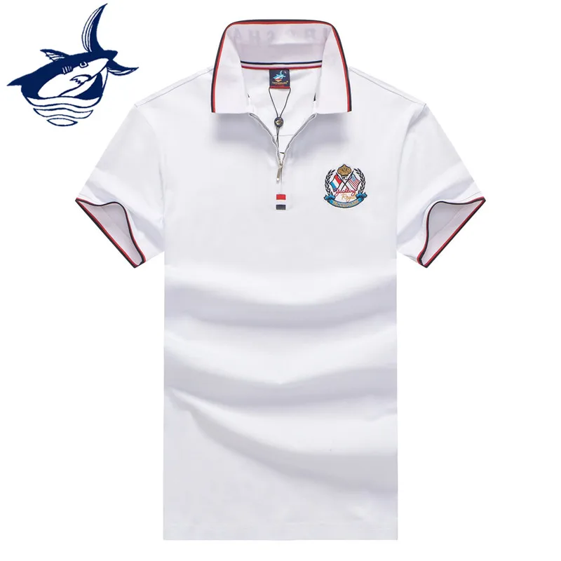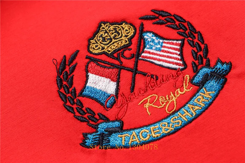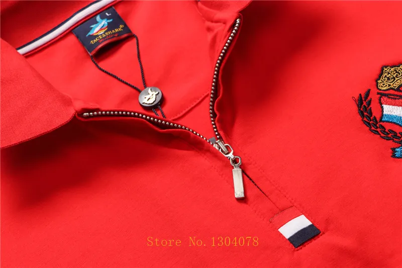 Мужская хлопковая рубашка-поло Tace Shark, красная, синяя, белая Повседневная рубашка-поло из 95% хлопка с короткими рукавами, на молнии, с вышивкой флагом