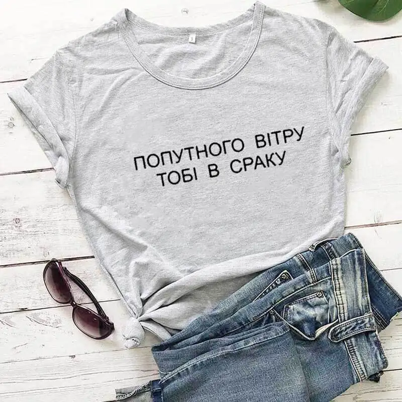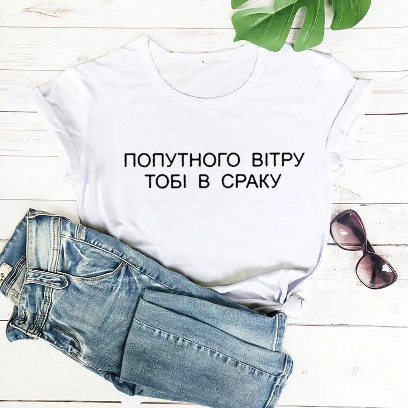 попутного вiтру ТОБ В СРАКУ русских букв, высокое качество, хлопковые топы с короткими рукавами, женская футболка