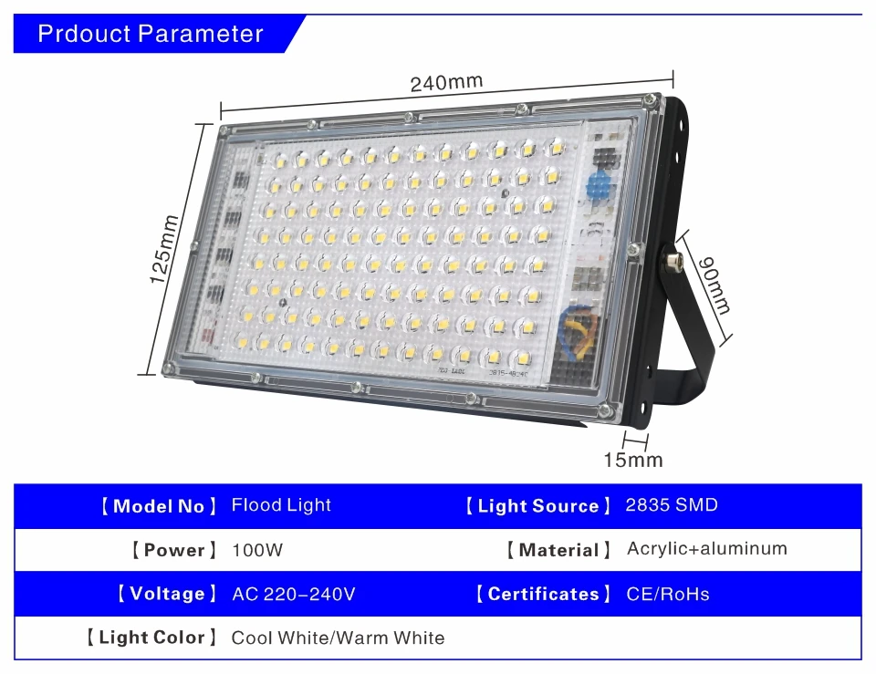 DSELCHUN 100 Вт Светодиодный прожектор AC 220 В 230 в 240 В уличсветильник прожектор Точечный светильник IP65 Водонепроницаемый светодиодный уличный фонарь ландшафтное освещение