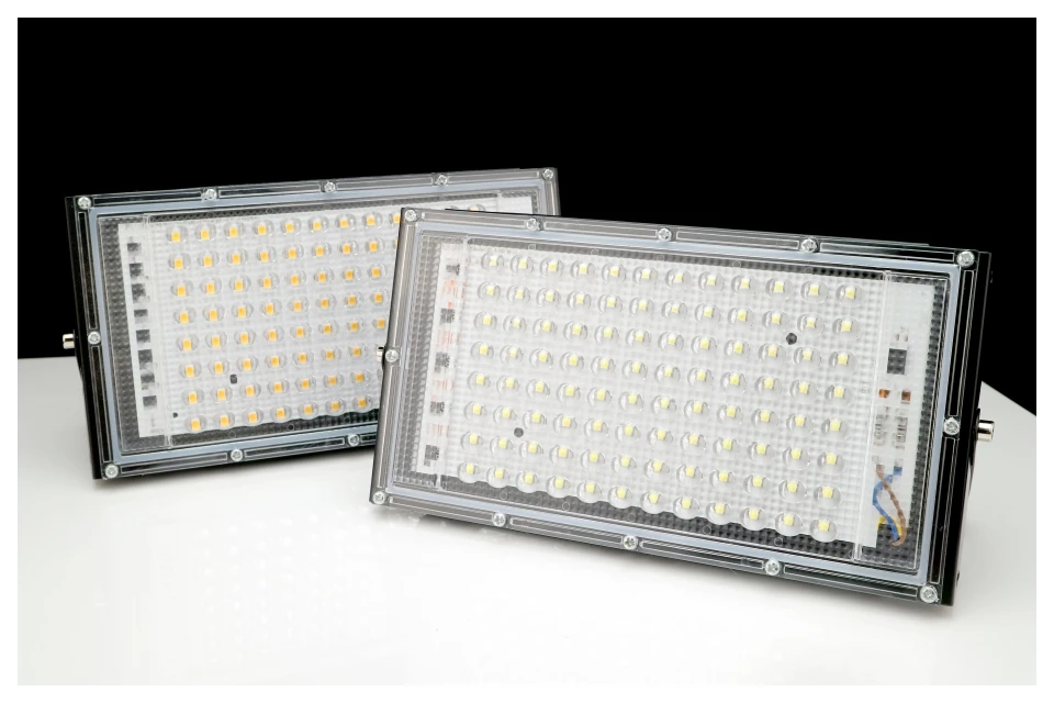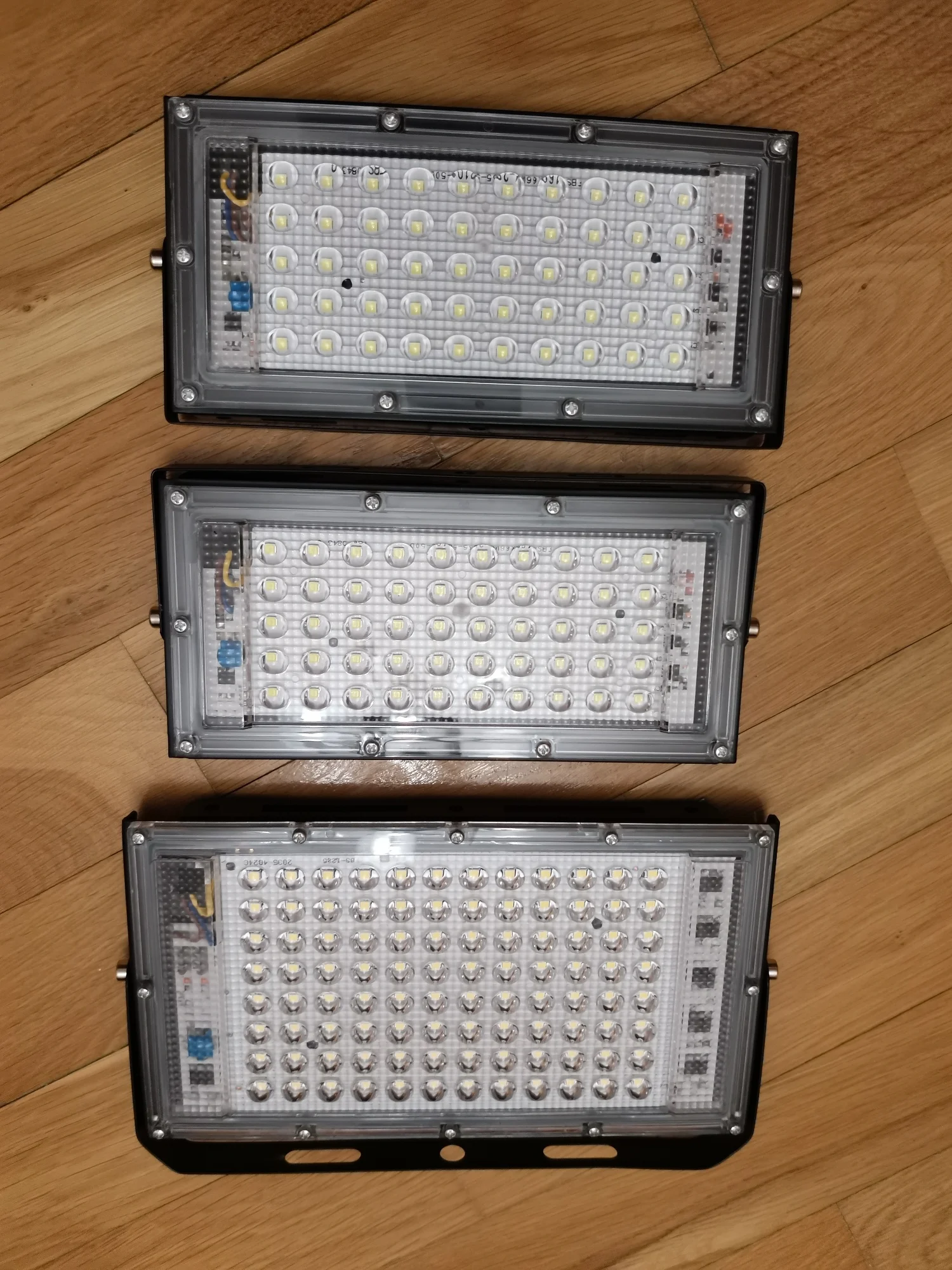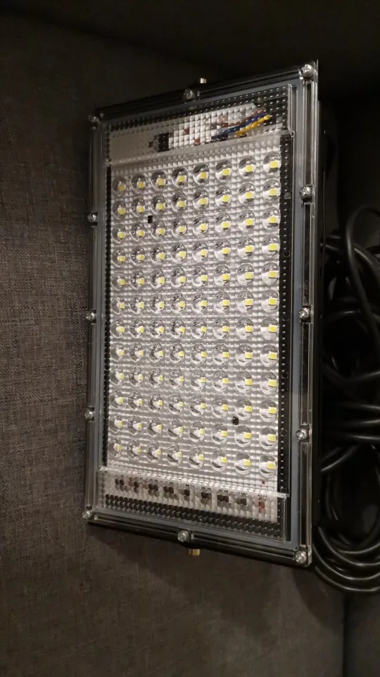Светит на все заявленных 100. Сама крупнее обычных. Годится для использования кратковременно на улице, например, в паре с датчиком движения. Без дополнительного охлаждения может долго не прожить, жарит как в печи. Но все кто покупает обычно заранее об этом знают. На свою цену достойно. Хотя влагозащита конструкции под сомнением. Для долговременной работы можно покупать по несколко штук те, что пишут 50W и продают в среднем по $5 за штуку. По факту там где-то реальных 25W (по ваттметру с того же Али), светят соответственно, зато почти не греются. Одной такой больше года активного использования, при том что такой же конструкции с реальными 50W за это же время выдохлась. Или же стоит сразу смотреть в сторону чего-то вроде FL-T-PL 50W- подороже, но и конструкция серьёзнее с соответствующим охлаждением и герметичность может понадёжнее оказаться. Да. Все описанные мерцают и годятся только для общего освещения.