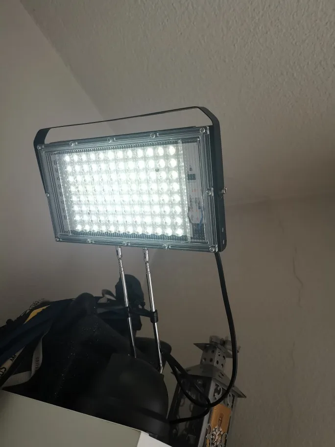 Продавец супер замечательный!!! Задавал вопросы по мере необходимости, отвечал быстро, даже после получения прожектора. Советую всем. Прожектор реально хороший. В данном снимке установил прожектор в низ . Так как освещю всех соседей.