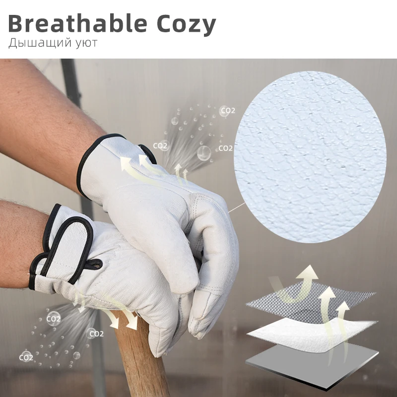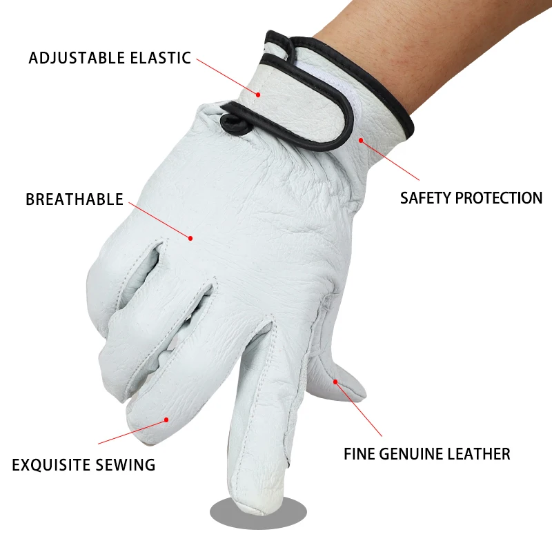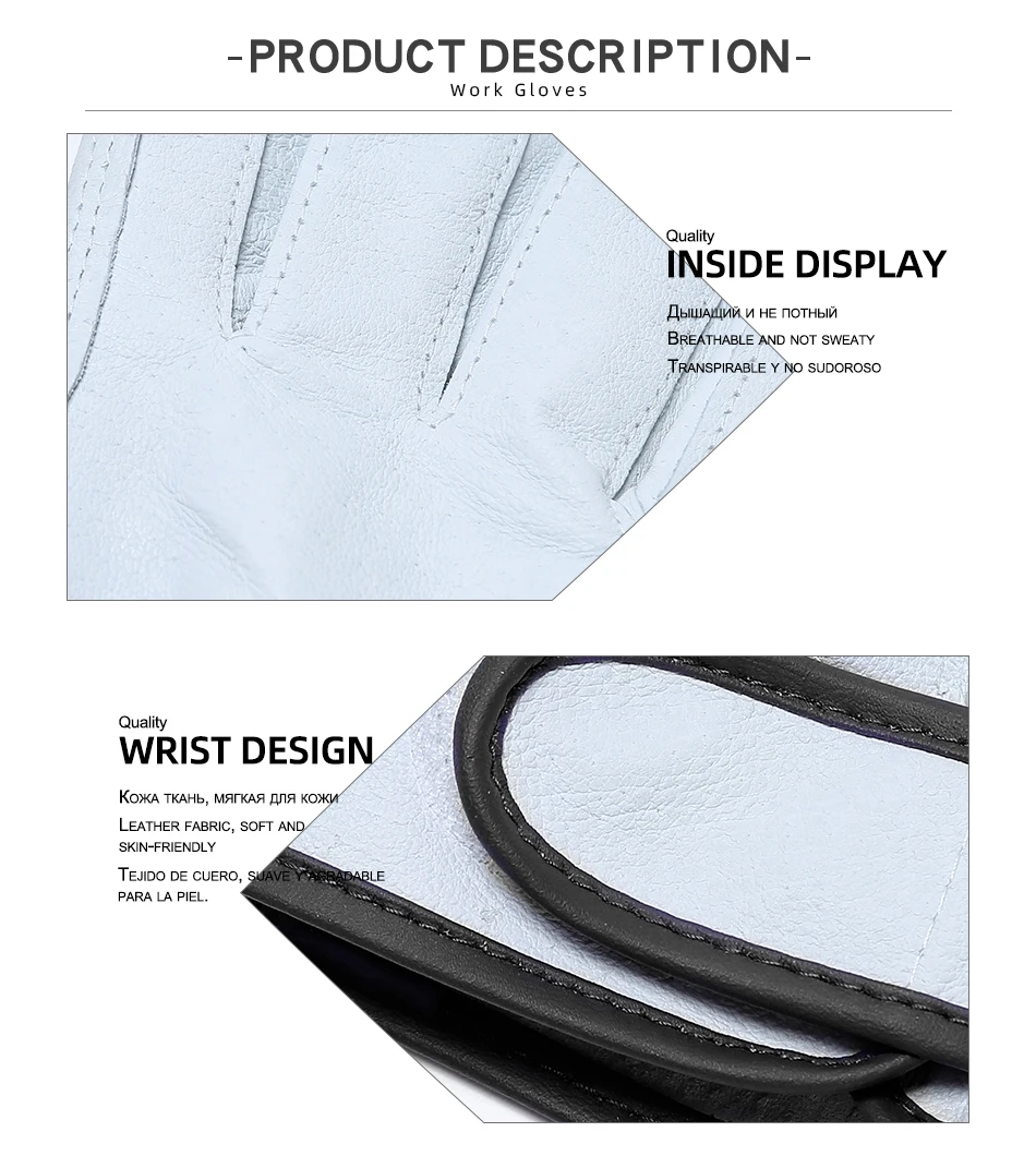 Изготовлено из высококачественной кожи средней толщины, мягкой и эластичной. Ладонь обладает повышенной износостойкостью, а эластичный ремешок может держать пыль и мусор внутри перчаток, делая перчатку более близкой к руке. Дизайн GON cut и KEYSTON thumb-перчатки Gunn cut обладают отличной прочностью и гибкостью, потому что шов начинается с ладони. Уменьшите напряжение в шве, и наш дизайн большого пальца Keystone для изготовления перчаток. Сделайте ваши руки более гибкими и двигайтесь более свободно. Из-за естественного дышащего материала он удобно впитывает пот.